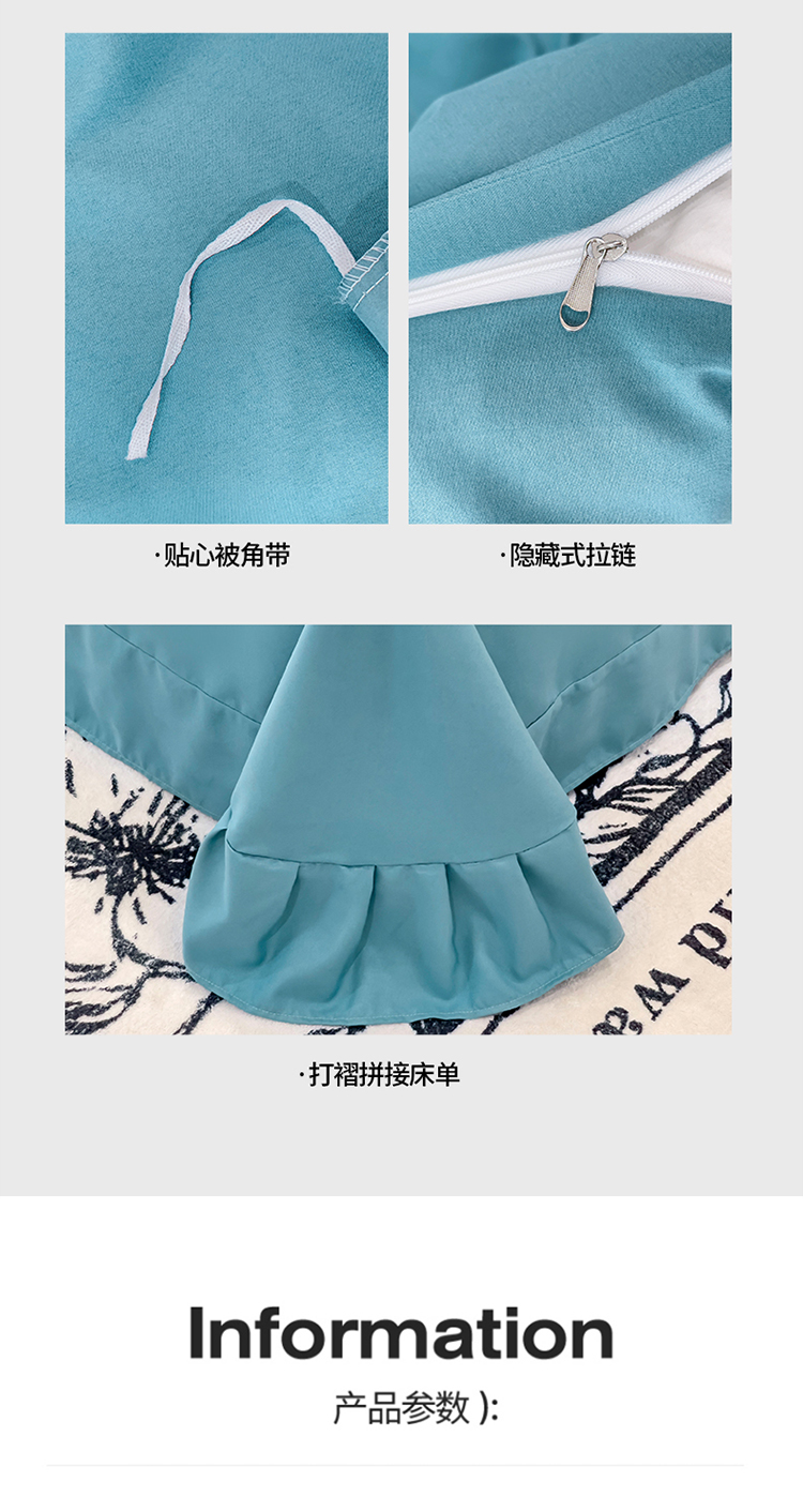 金米诺 新款韩版花边水洗棉泡泡纱四件套公主条四件套 褶皱-浅蓝,褶皱-浅蓝