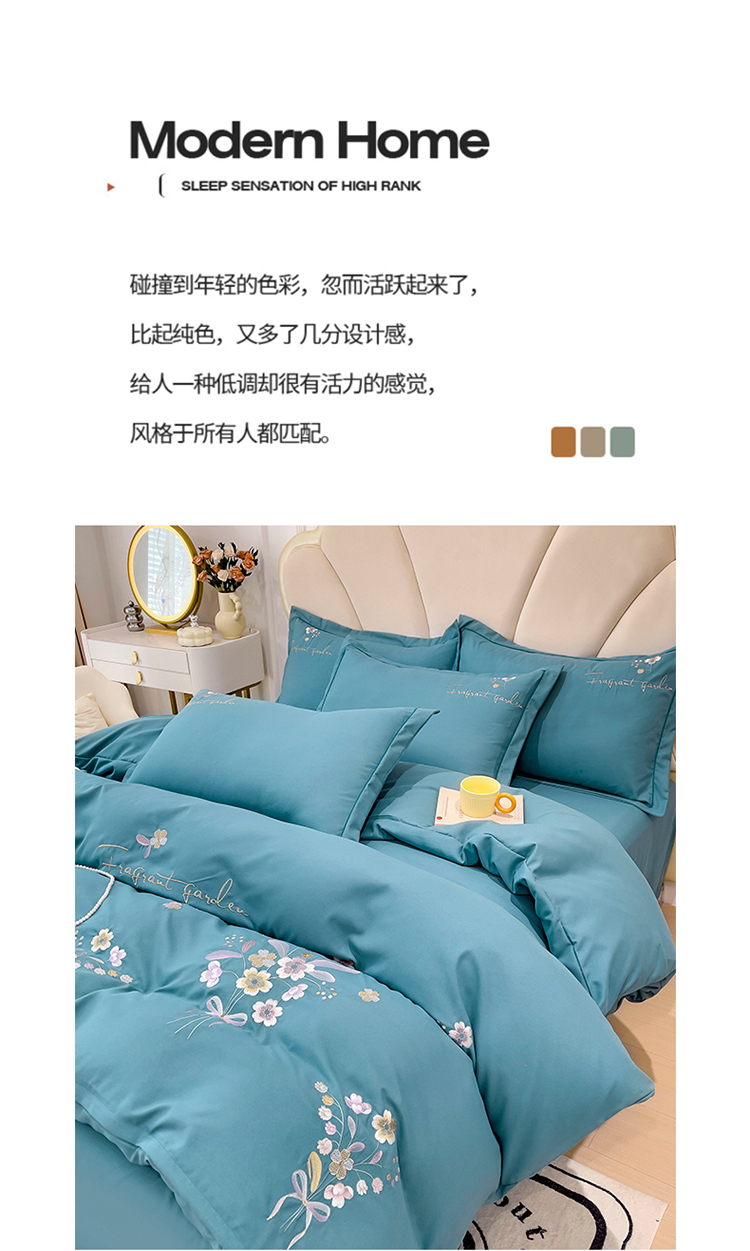 (总)金米诺 2024新款磨毛四件套刺绣系列,豆沙,翡翠绿,抹茶绿,浅姜黄,深蓝,烟灰,烟灰紫
