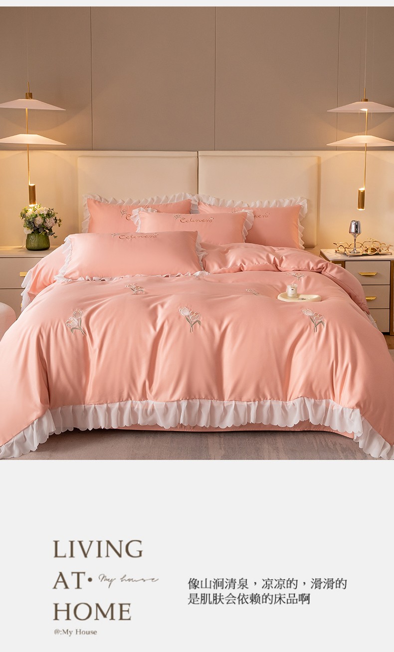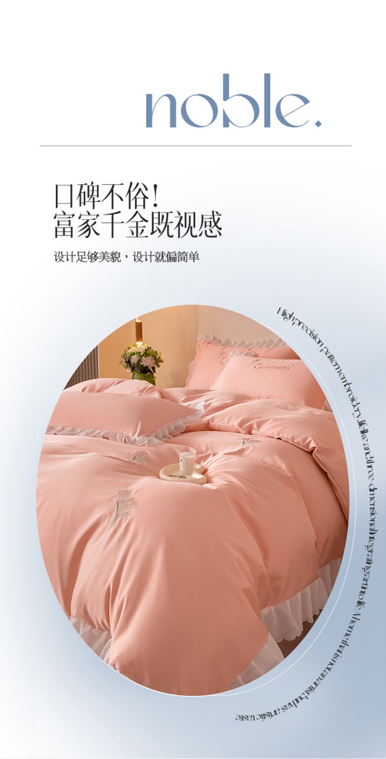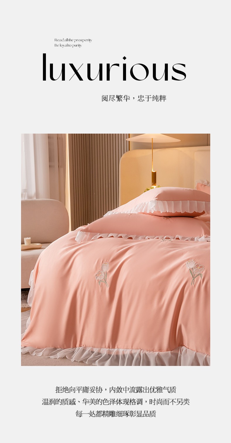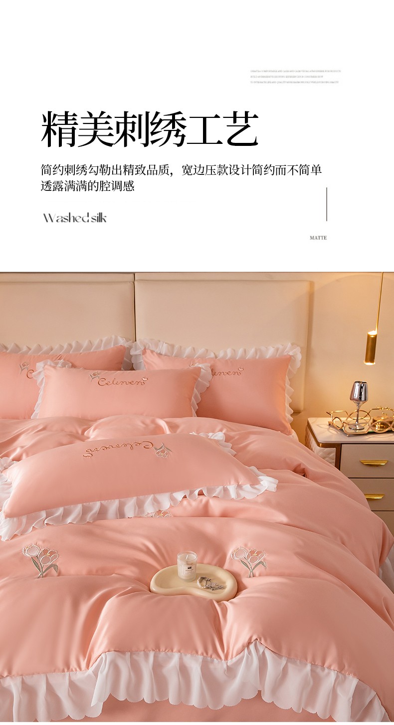 菲儿家纺 2023新款郁金香系列水洗真丝刺绣四件套 郁金香-桔