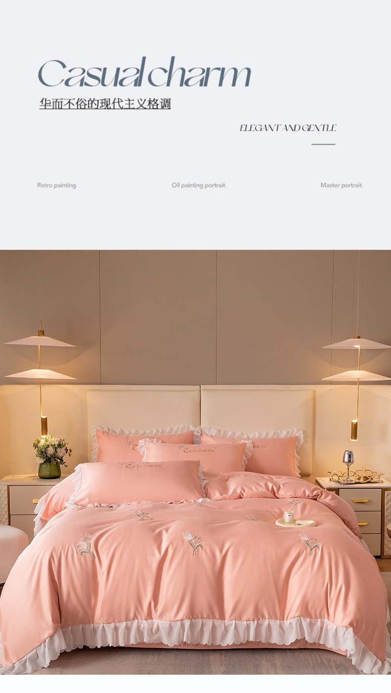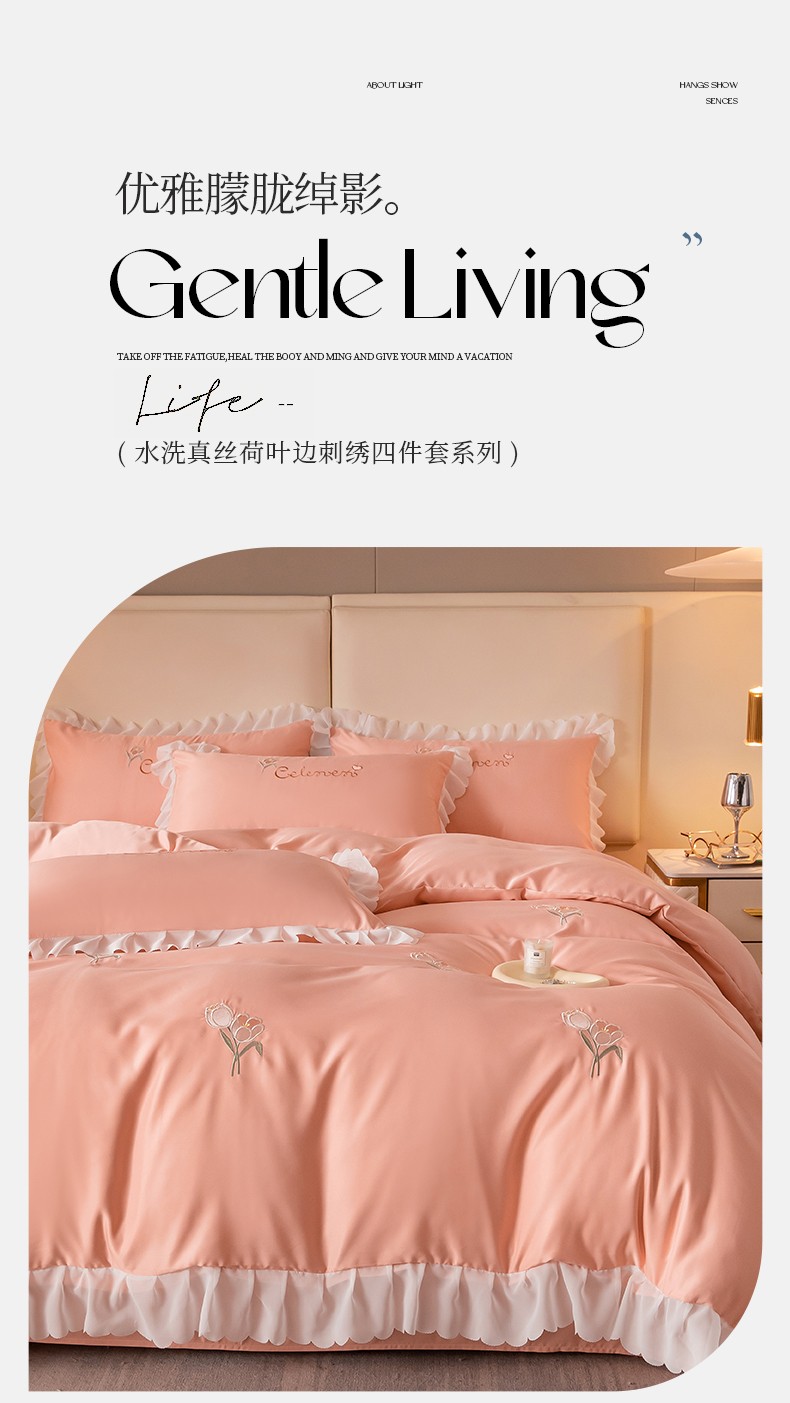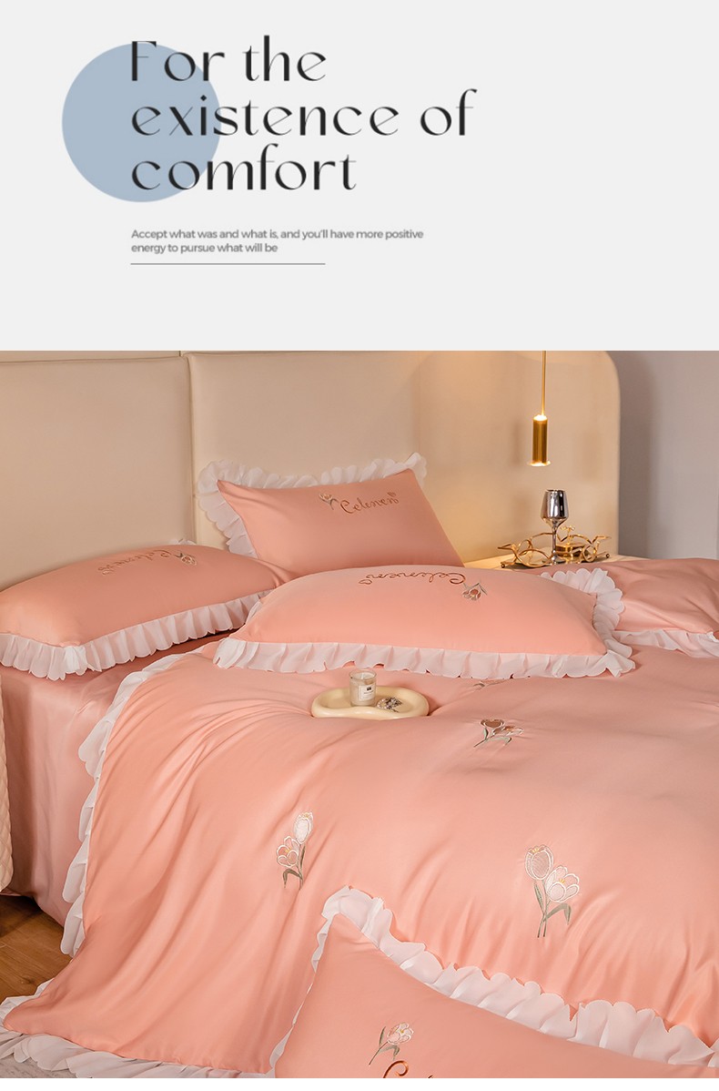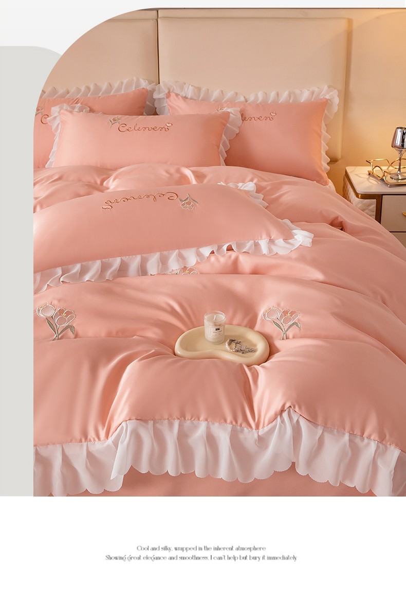 菲儿家纺 2023新款郁金香系列水洗真丝刺绣四件套 郁金香-桔