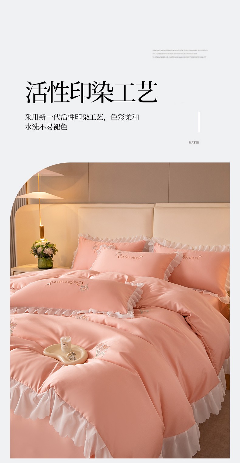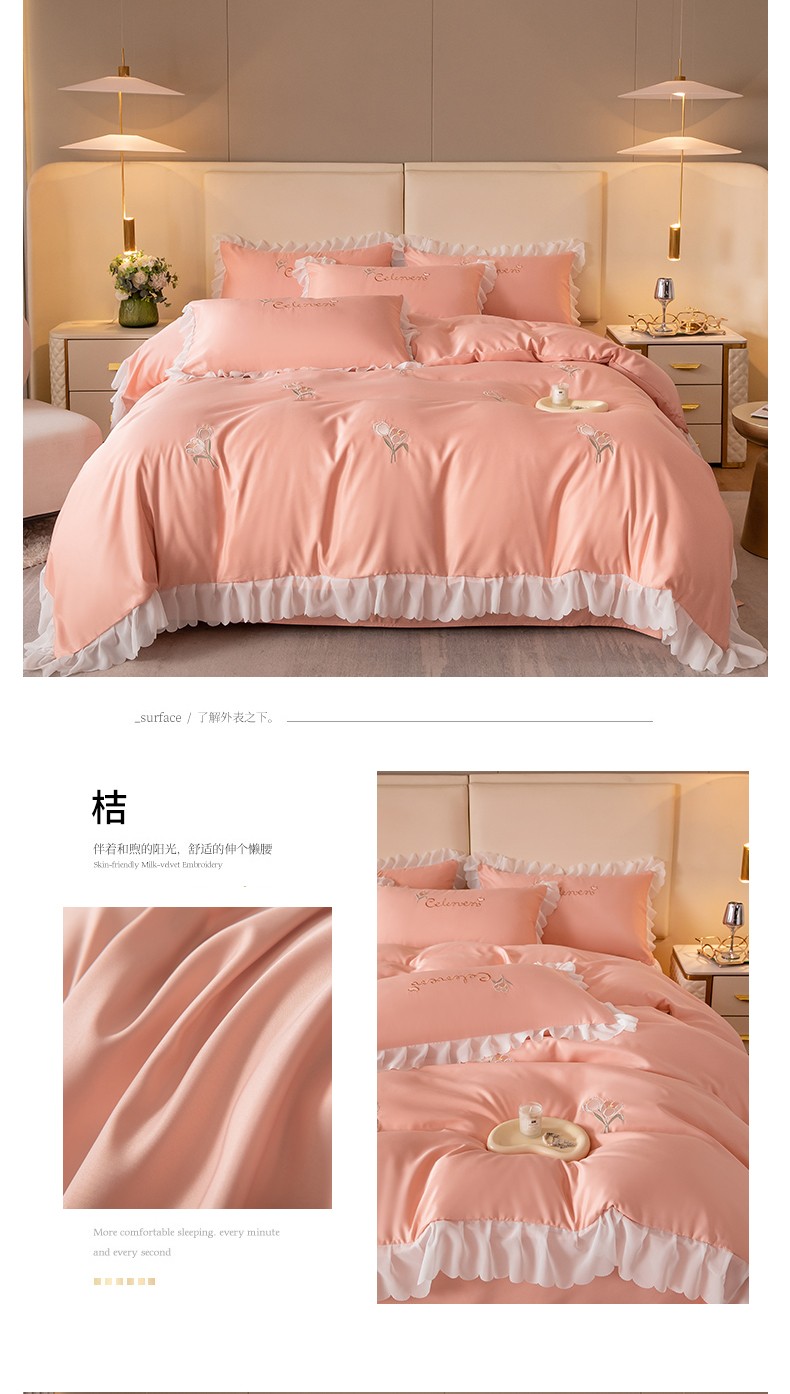 (总)菲儿家纺 2023新款直播高克重纯色牛奶绒平绣花边四件套-黛茜,黛茜-粉,黛茜-黄,黛茜-蓝,黛茜-绿,黛茜-紫
