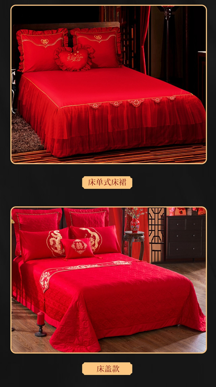 (总)慕她家纺 2025新款全棉纯棉婚庆四件套大红色刺绣多件套,百子贺喜,好运吉祥,吉祥龙凤,名门龙凤,天生一对,执手龙凤,至尊龙凤,子孙满堂