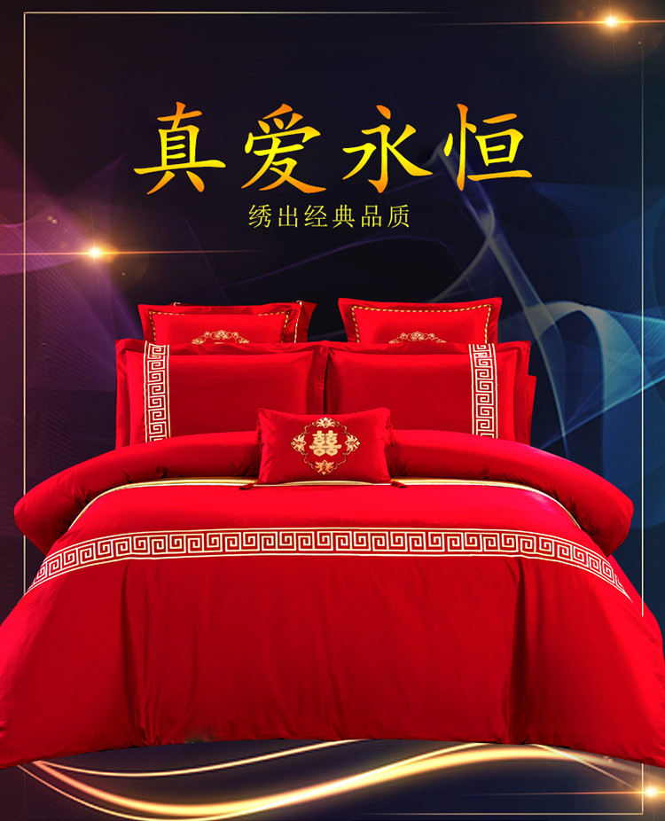 慕她婚庆四件套大红色结婚全棉纯棉简约刺绣花多件套直播 真爱永恒