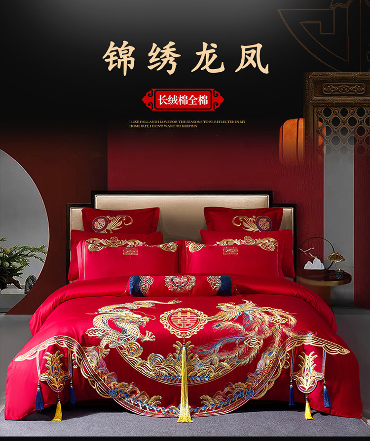 (总)慕她家纺 2025慕她婚庆长绒棉四件套大红色全棉纯棉刺绣结婚床上用品,华贵龙凤,金玉龙凤,锦绣龙凤,浪漫喜事,礼赞唐朝,龙凤百子,龙凤报喜,龙凤婚约,龙凤良缘,龙凤瑞彩,龙凤王朝,龙凤迎亲,琴瑟和鸣,盛世红妆,喜上加喜,祥龙瑞凤,永浴爱河,长绒棉-欢喜龙凤,长绒棉-早生贵子