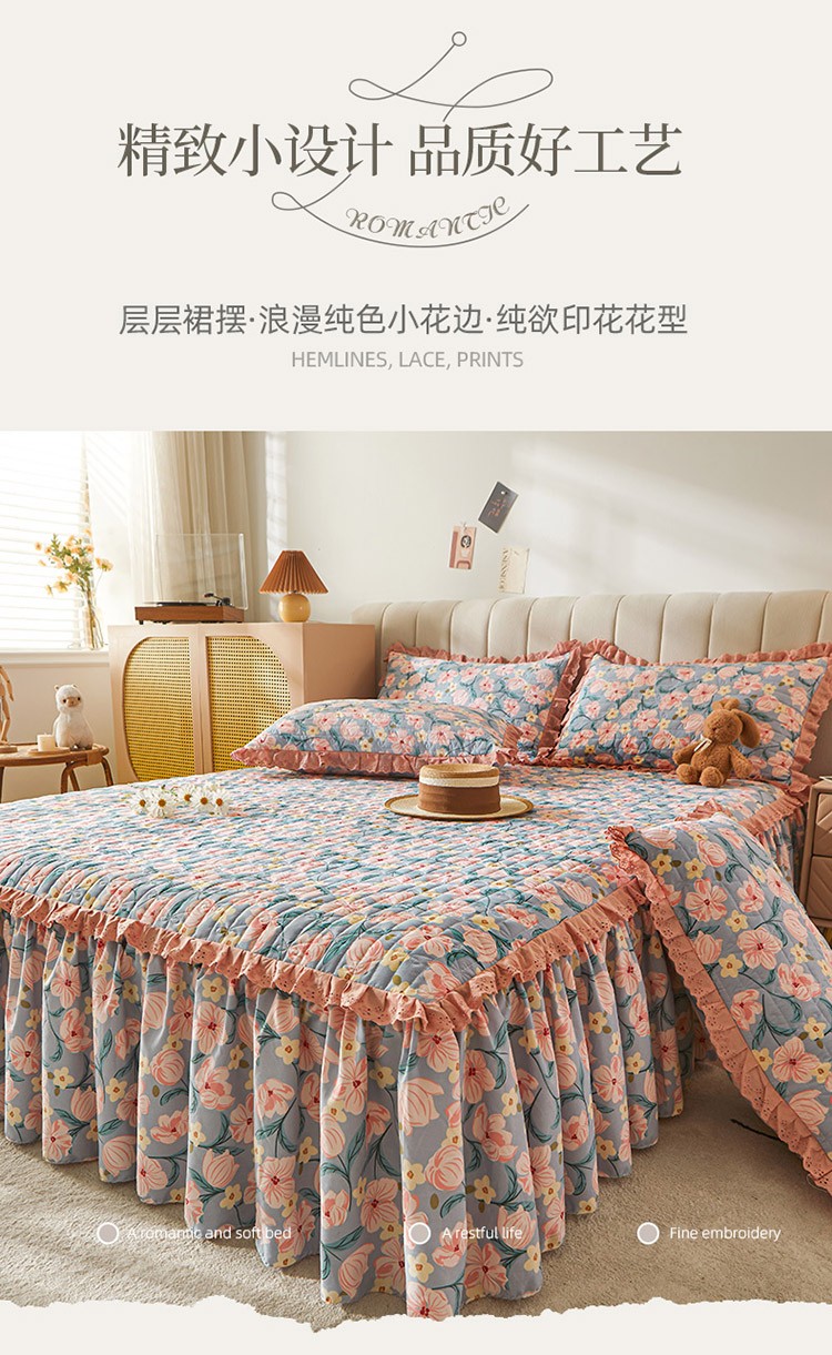 (总)恋尚 2025新款全棉纯棉蕾丝印花单床笠裙床笠裙单件,芙微,花蝶语,花茜,蔓朵,浅栀,夏瑶,向朵,寻芳朵朵,荨花