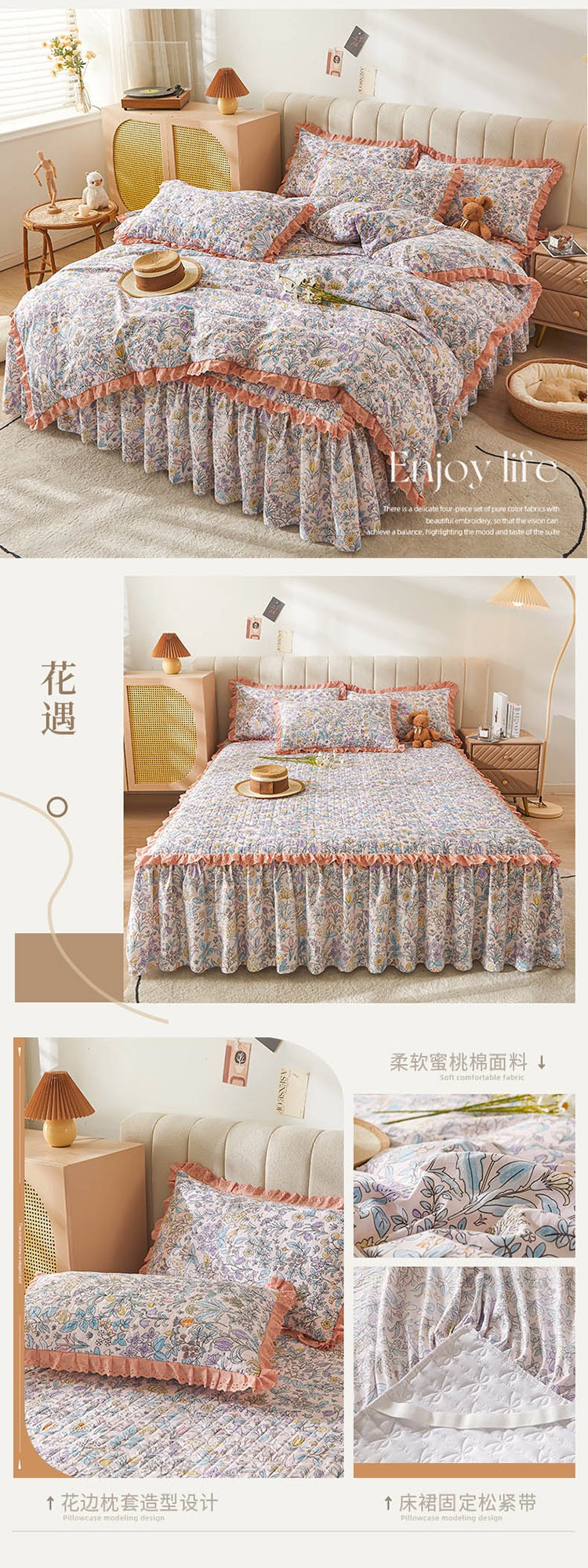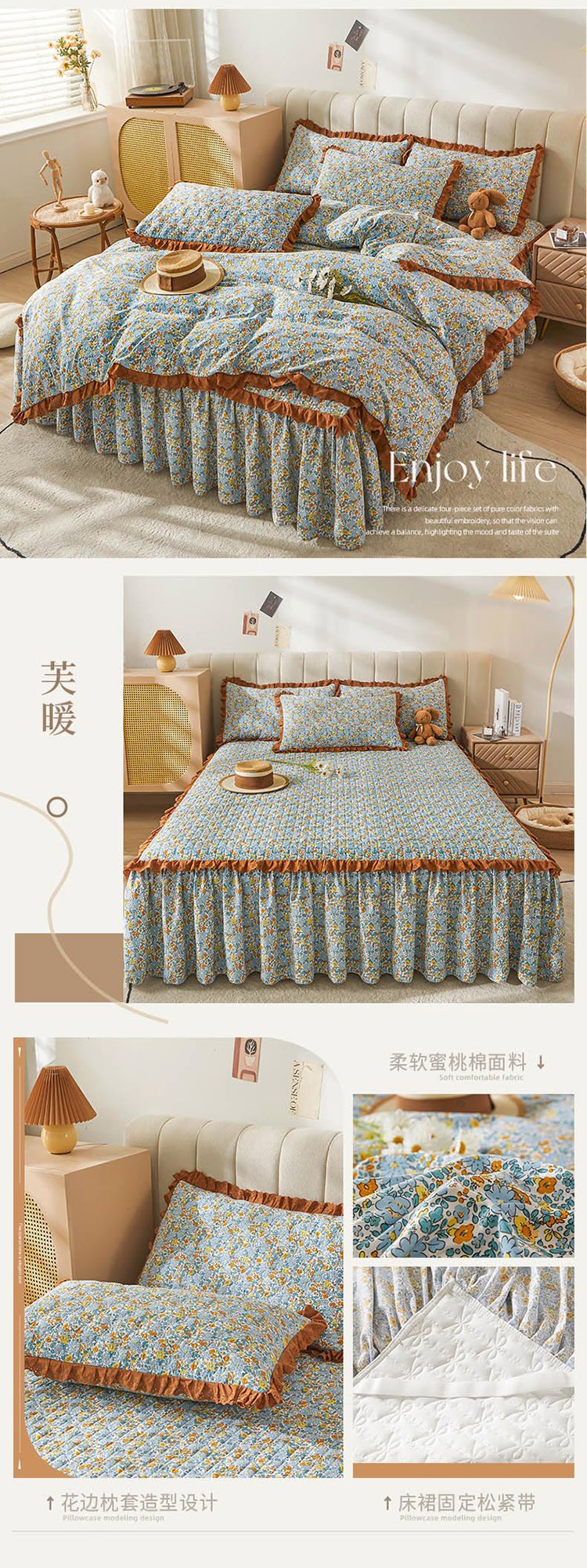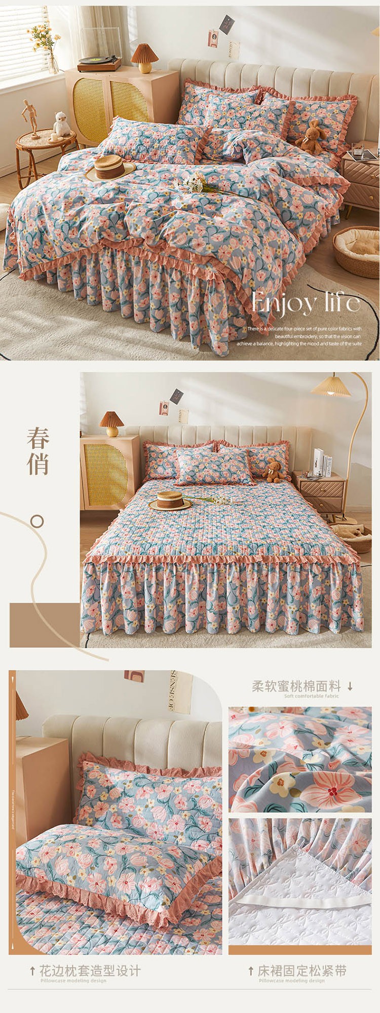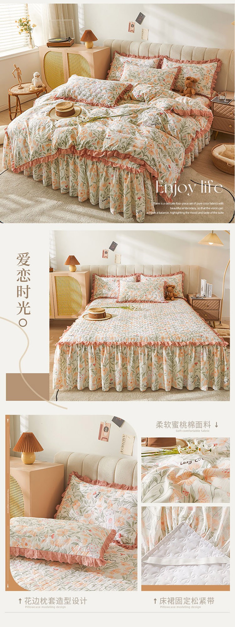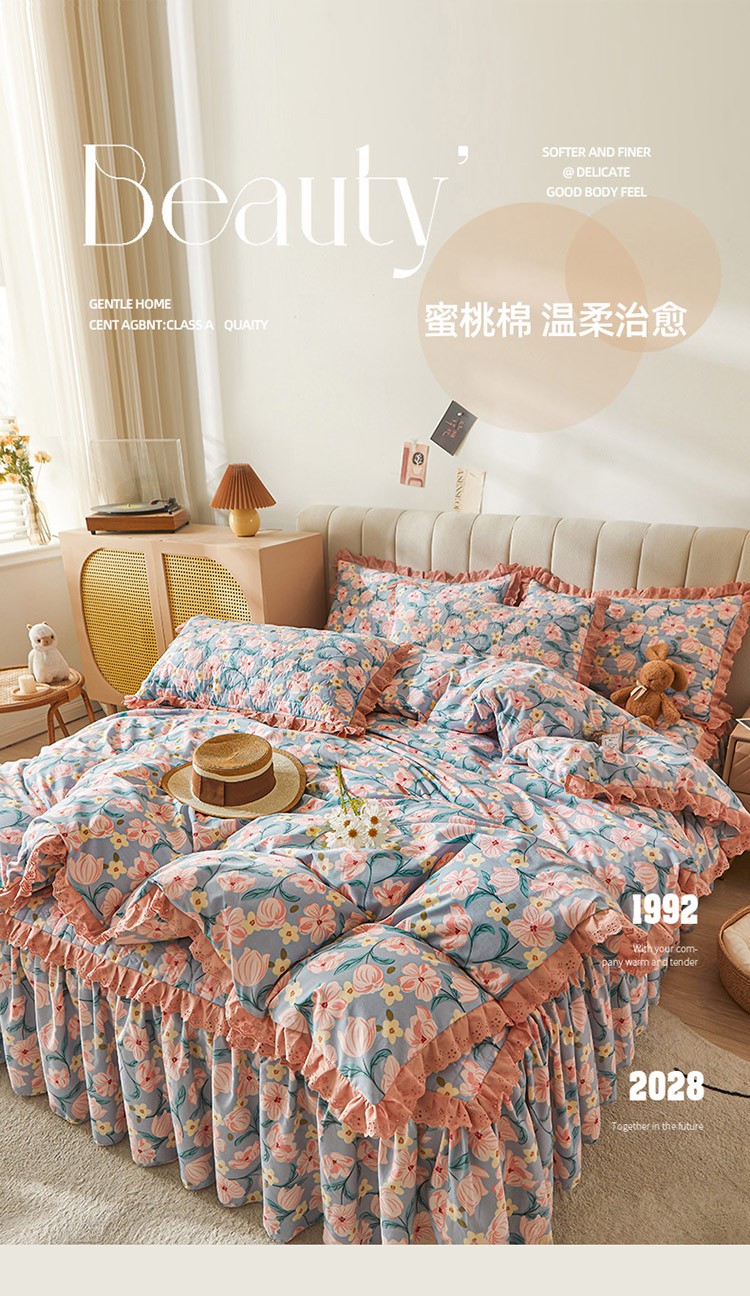 (总)恋尚 2023新款蜜桃棉印花夹棉床裙款四件套