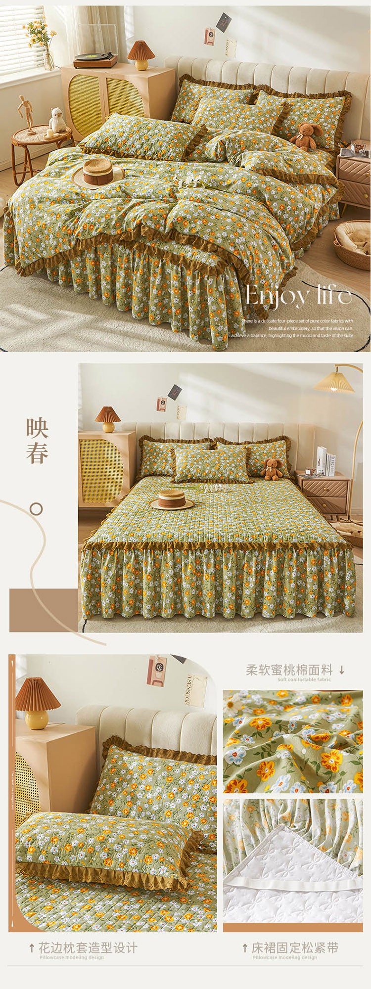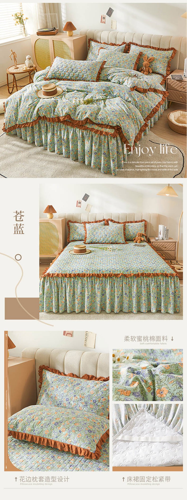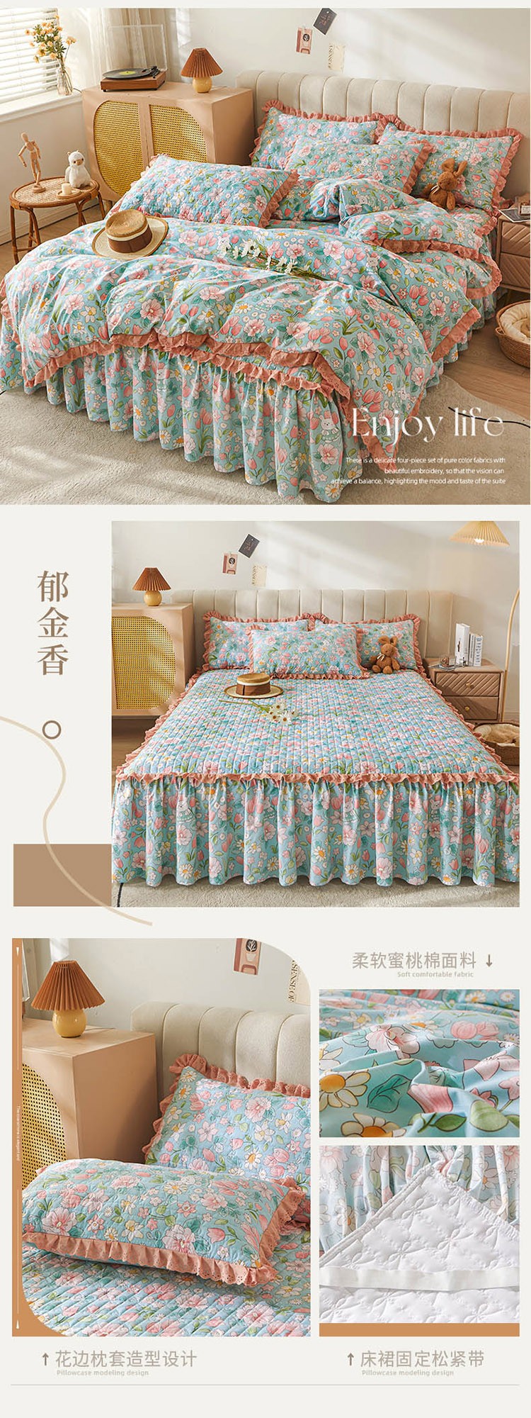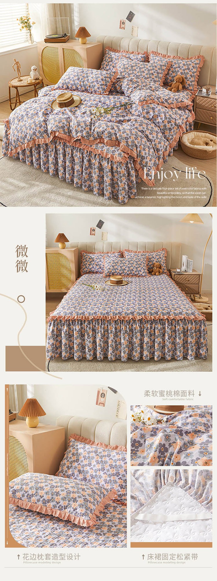 (总)恋尚 2023新款蜜桃棉印花夹棉床裙款四件套