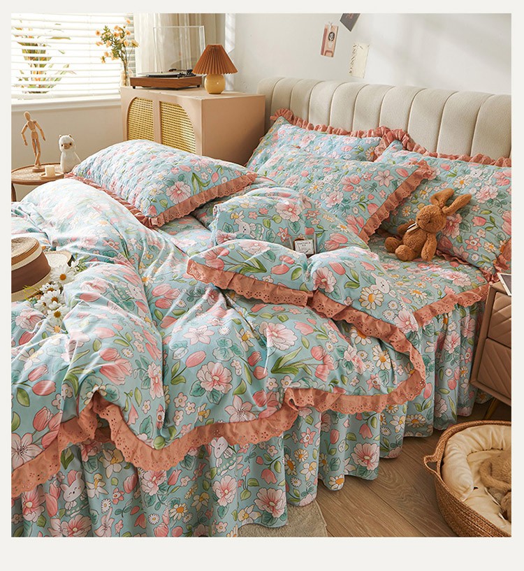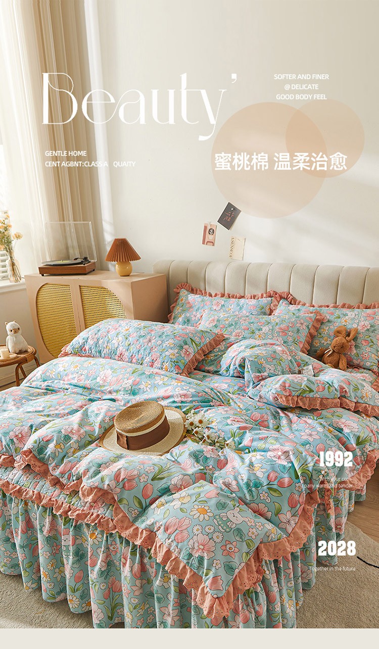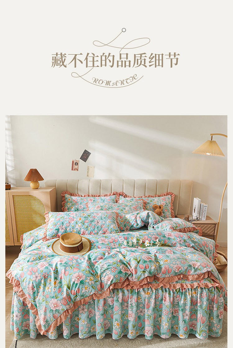当前位置: 91家纺网 > 商品网购 > 床品套件 > 四件套 > 全棉普通四件套 > 恋尚 2023新款蜜桃棉印花夹棉床裙款四件套 郁金香
