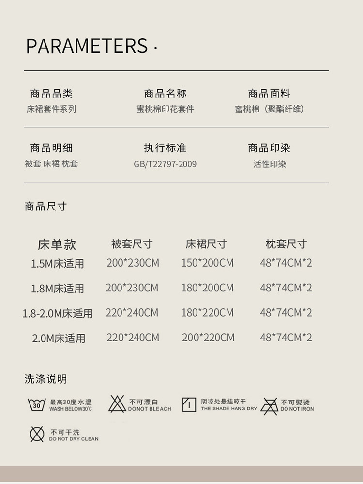2.0m床裙款四件套(被套220*240cm床裙200*220cm枕套48*74cm*2) | ¥180.00 |
