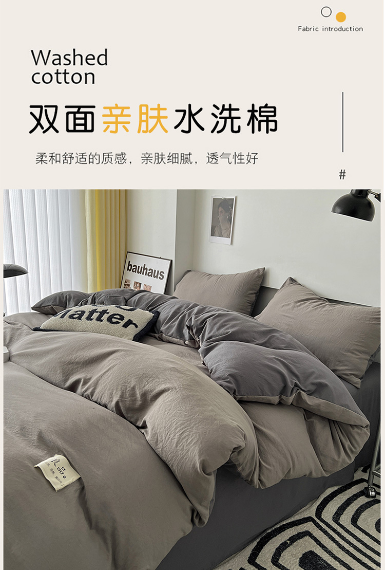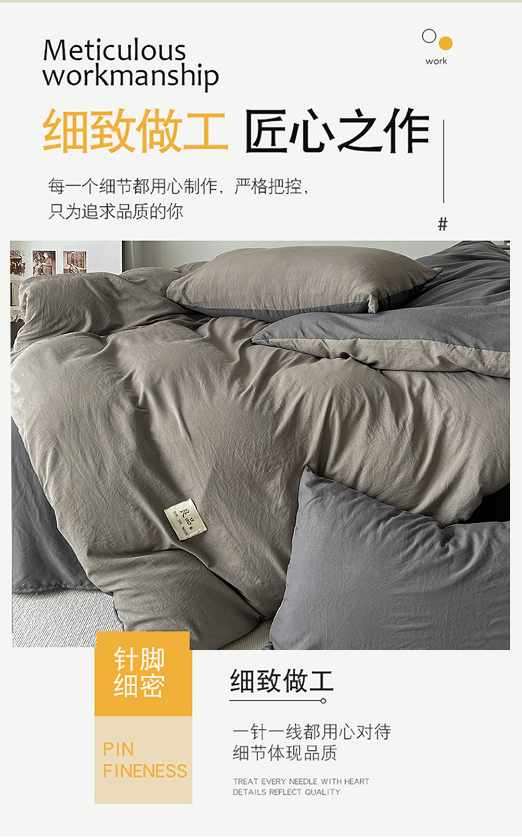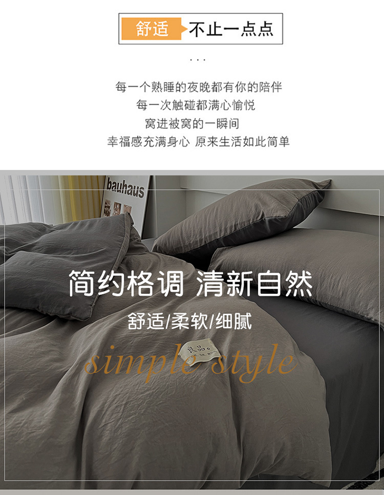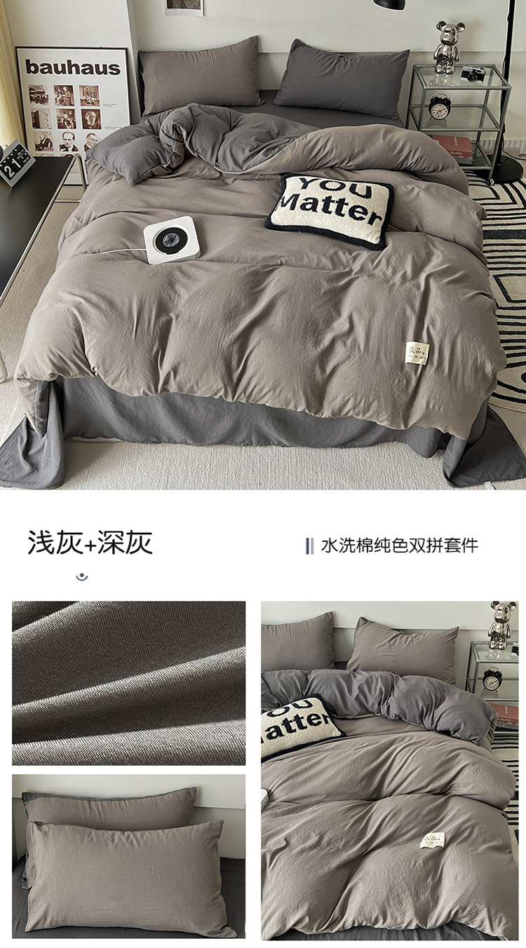 当前位置: 91家纺网 > 商品网购 > 床品套件 > 四件套 > 化纤普通四件套 > 优色良品家纺 2023新款博主风90克超柔水洗棉双拼四件套 浅灰+深灰