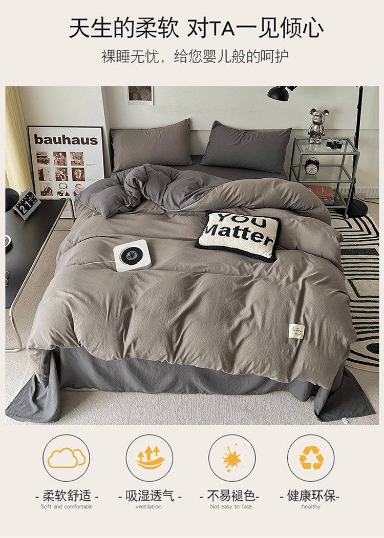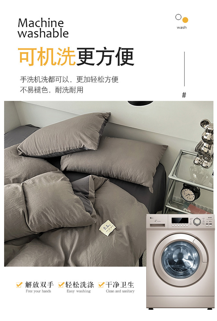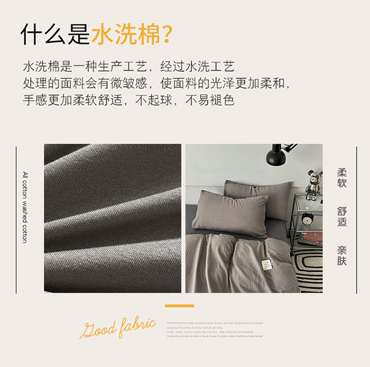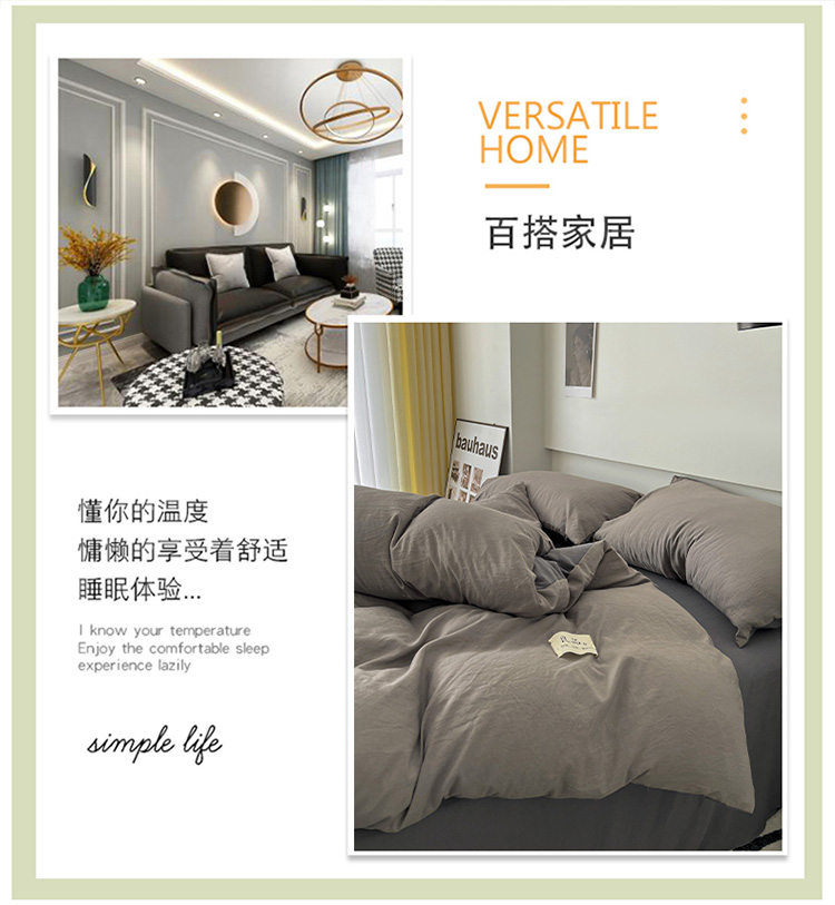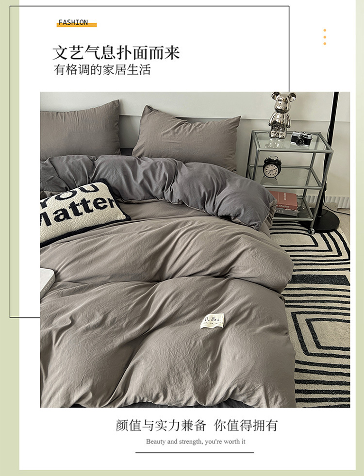 当前位置: 91家纺网 > 商品网购 > 床品套件 > 四件套 > 化纤普通四件套 > 优色良品家纺 2023新款博主风90克超柔水洗棉双拼四件套 浅灰+深灰