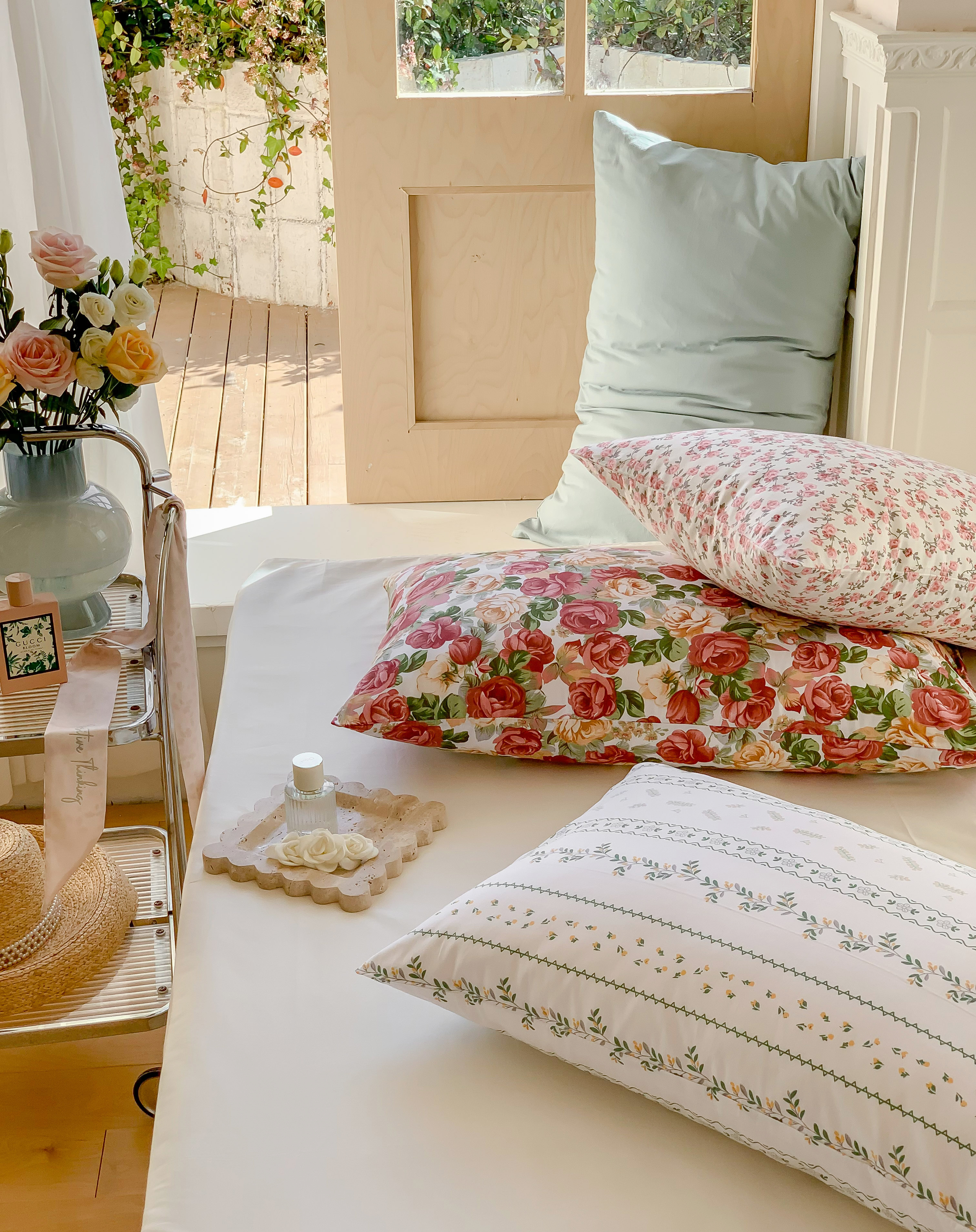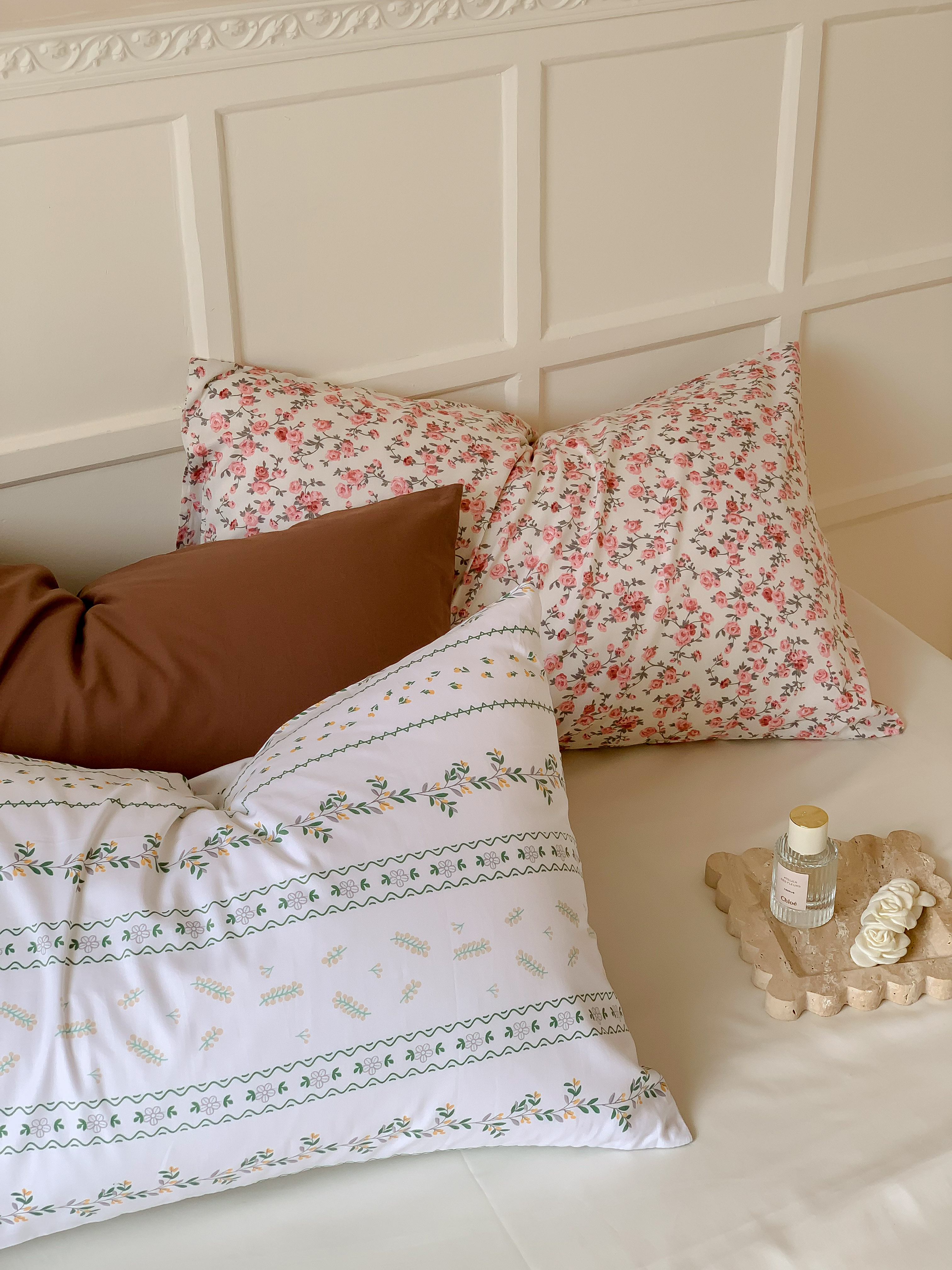 窝米 全棉斜纹枕套(花卉类) 苏蕾枕套