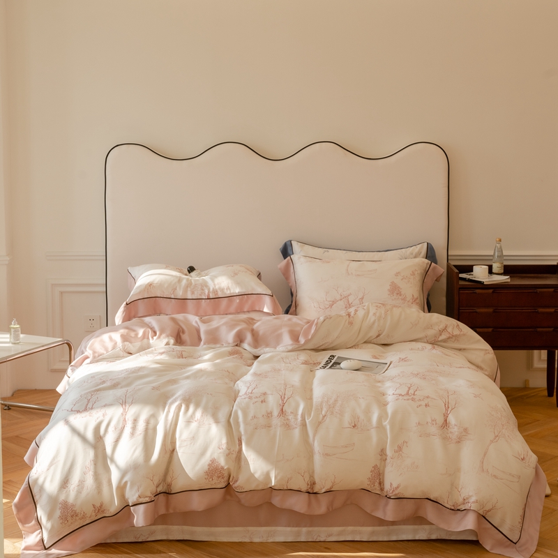 (总)优然居家纺 2025新款50支全棉纯棉印花法式双头木耳边四件套,觅棠,莫妮卡艾绿,莫妮卡罗兰,慕斯粉,薇薇安