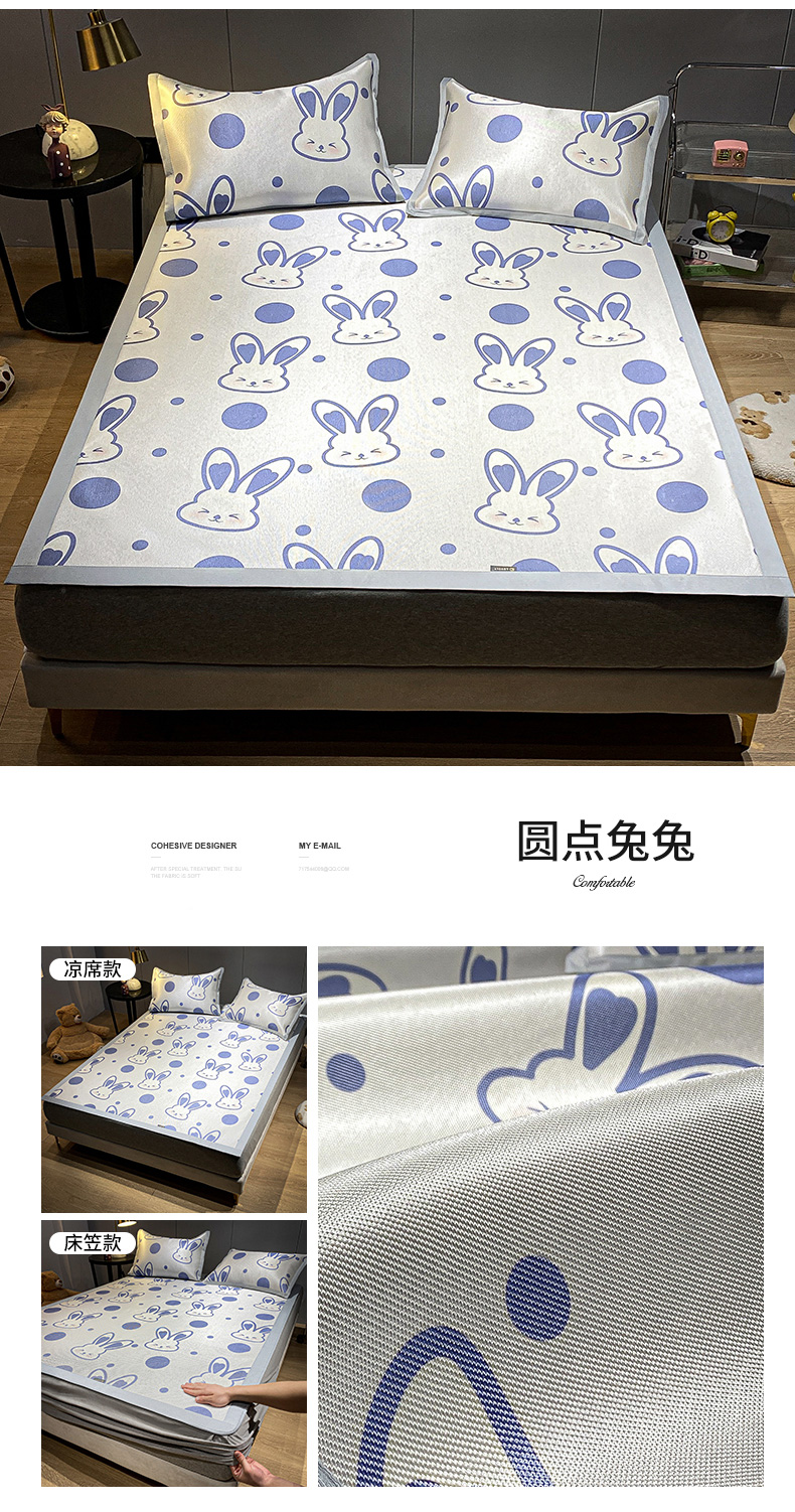 商品名称:安哆啦 A类数码印花冰丝藤席三件套 圆点兔兔