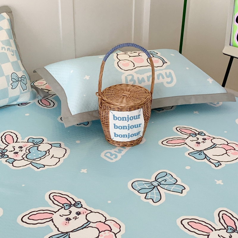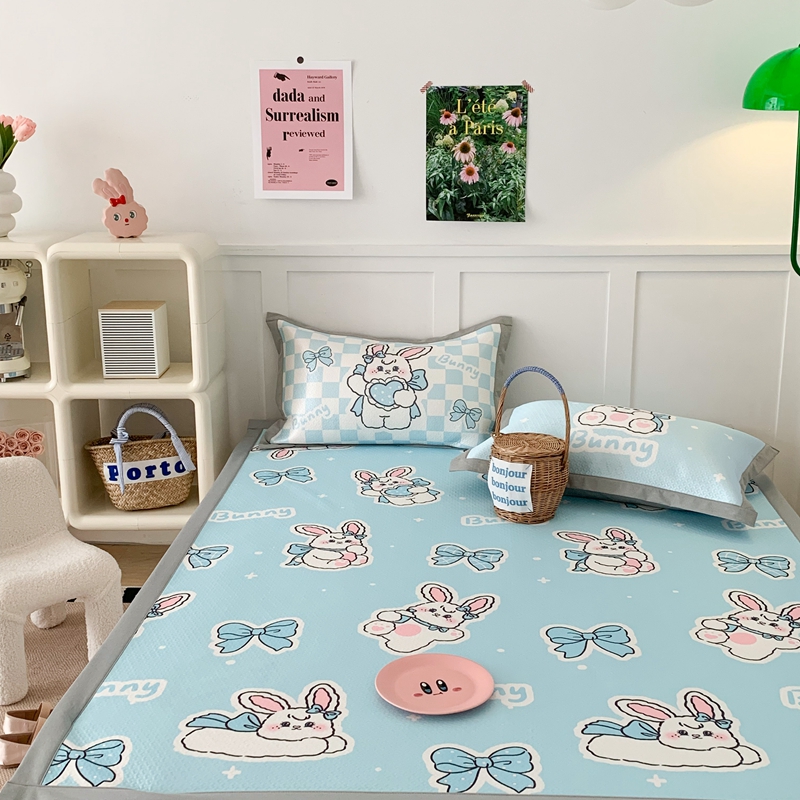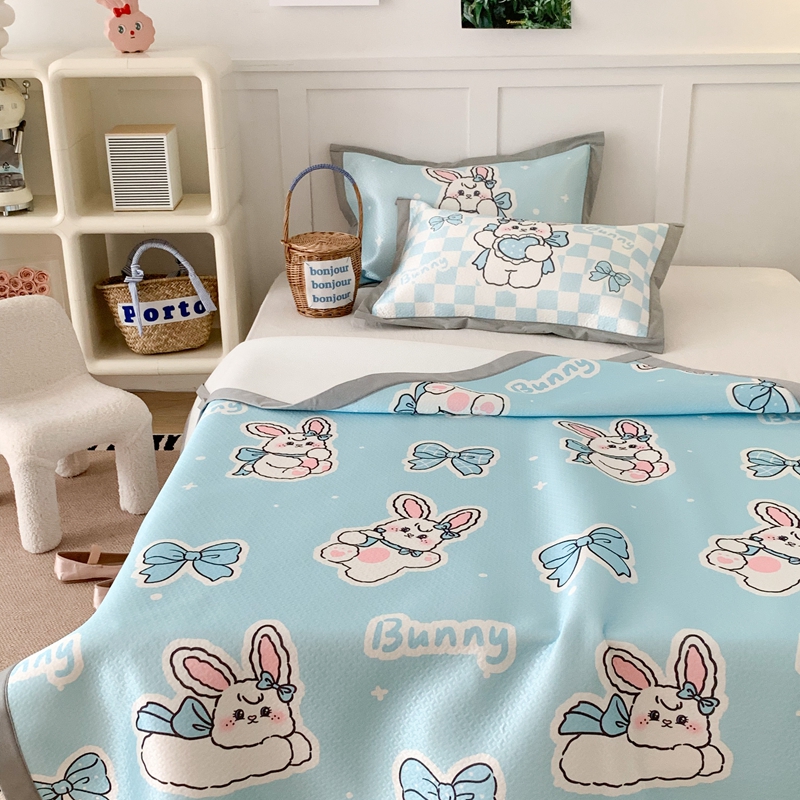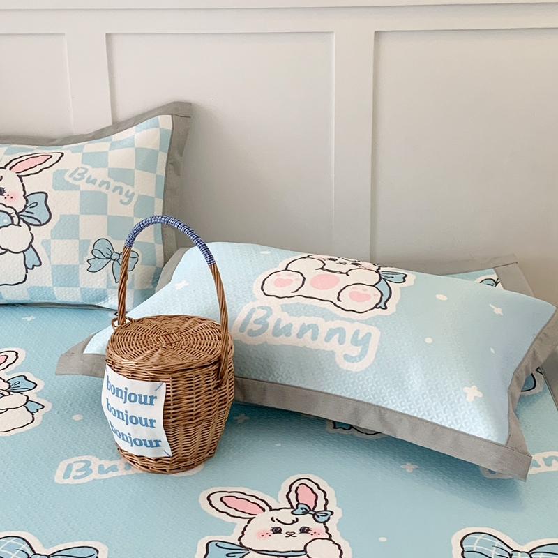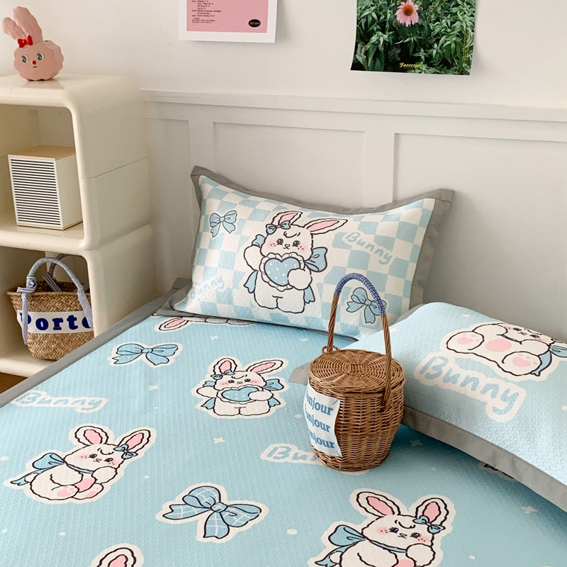 昔可 2023新款凉感海洋丝针织软席三件套 蓝色蝴蝶结兔