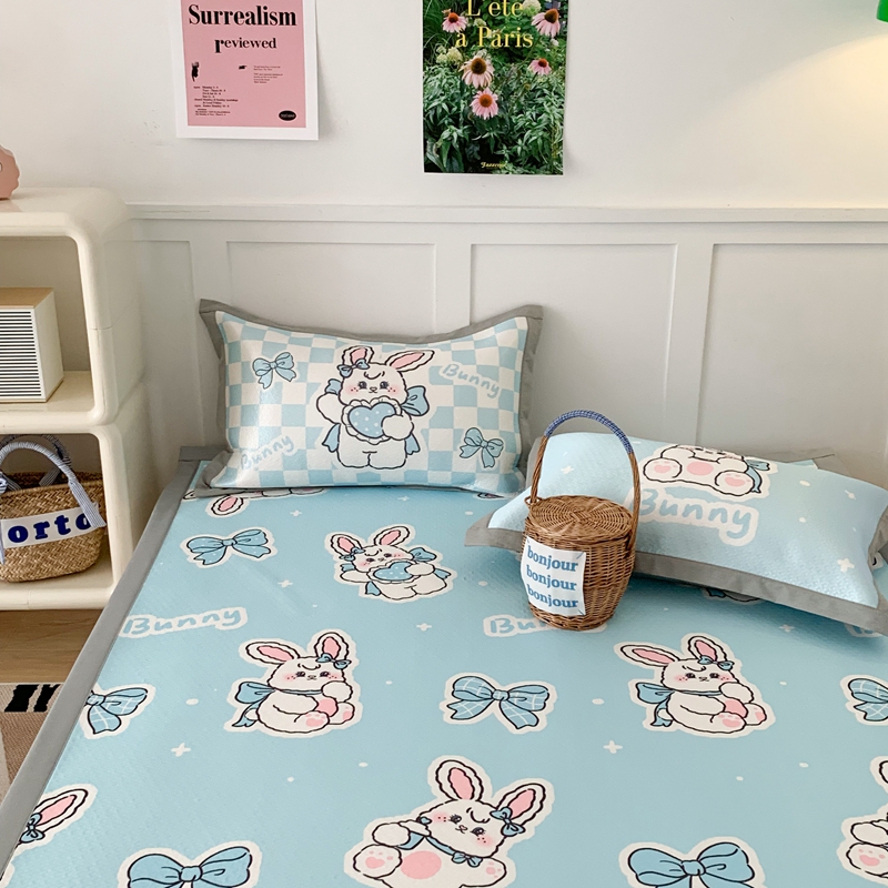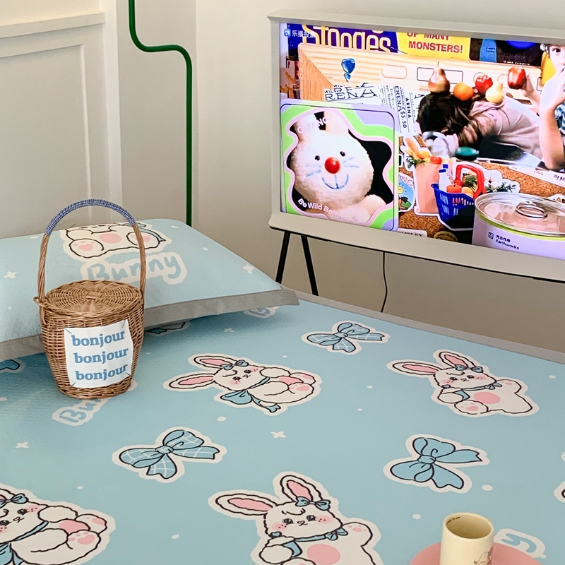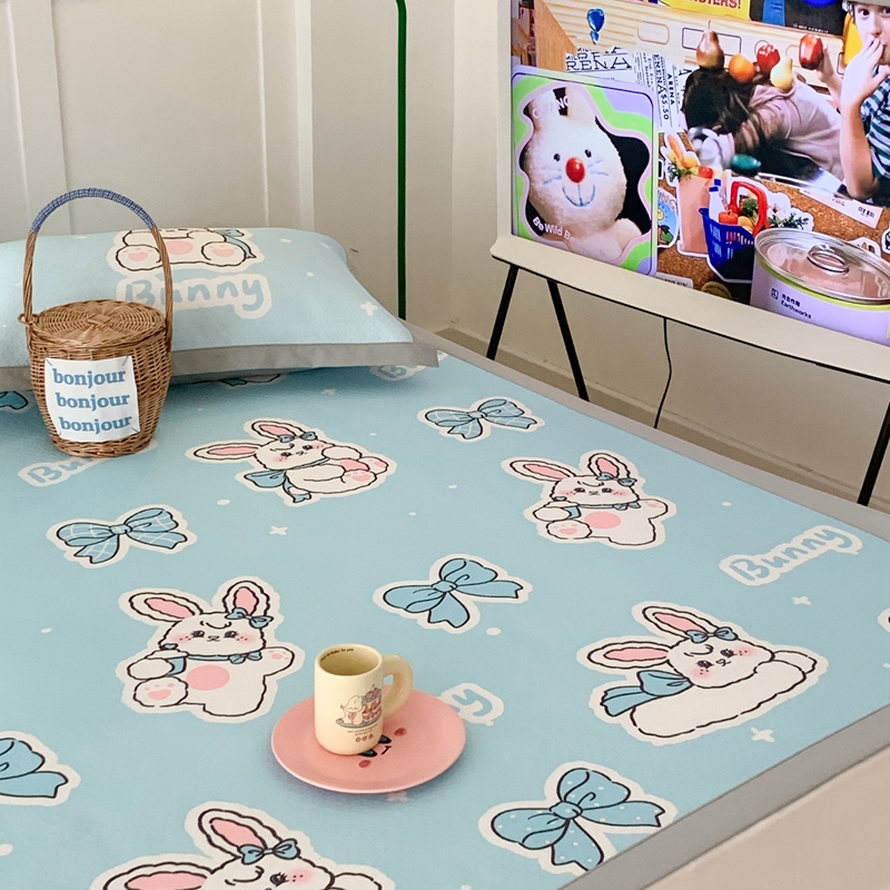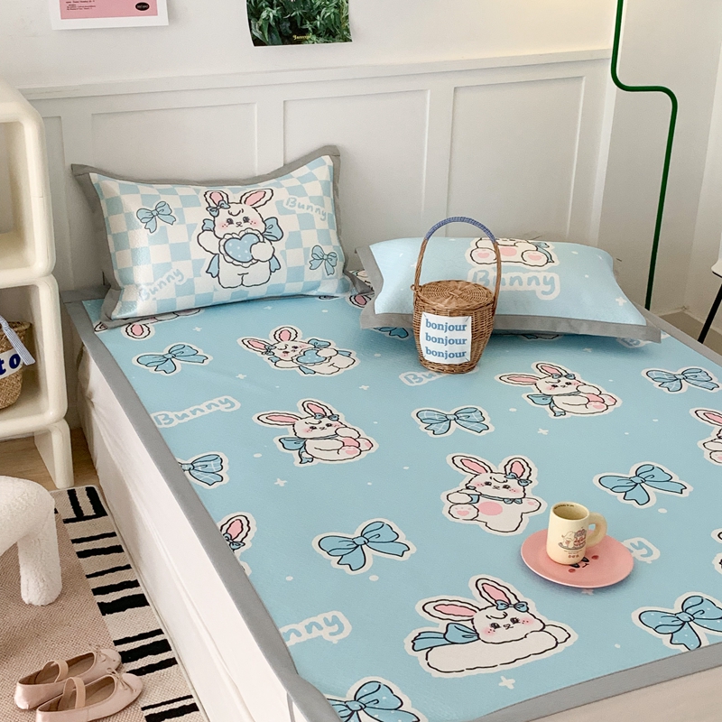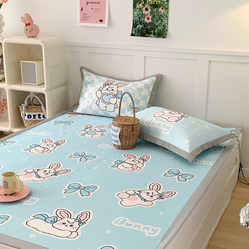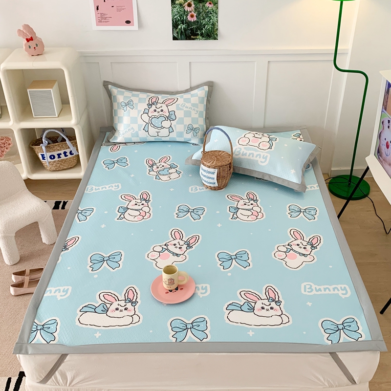 昔可 2023新款凉感海洋丝针织软席三件套 蓝色蝴蝶结兔