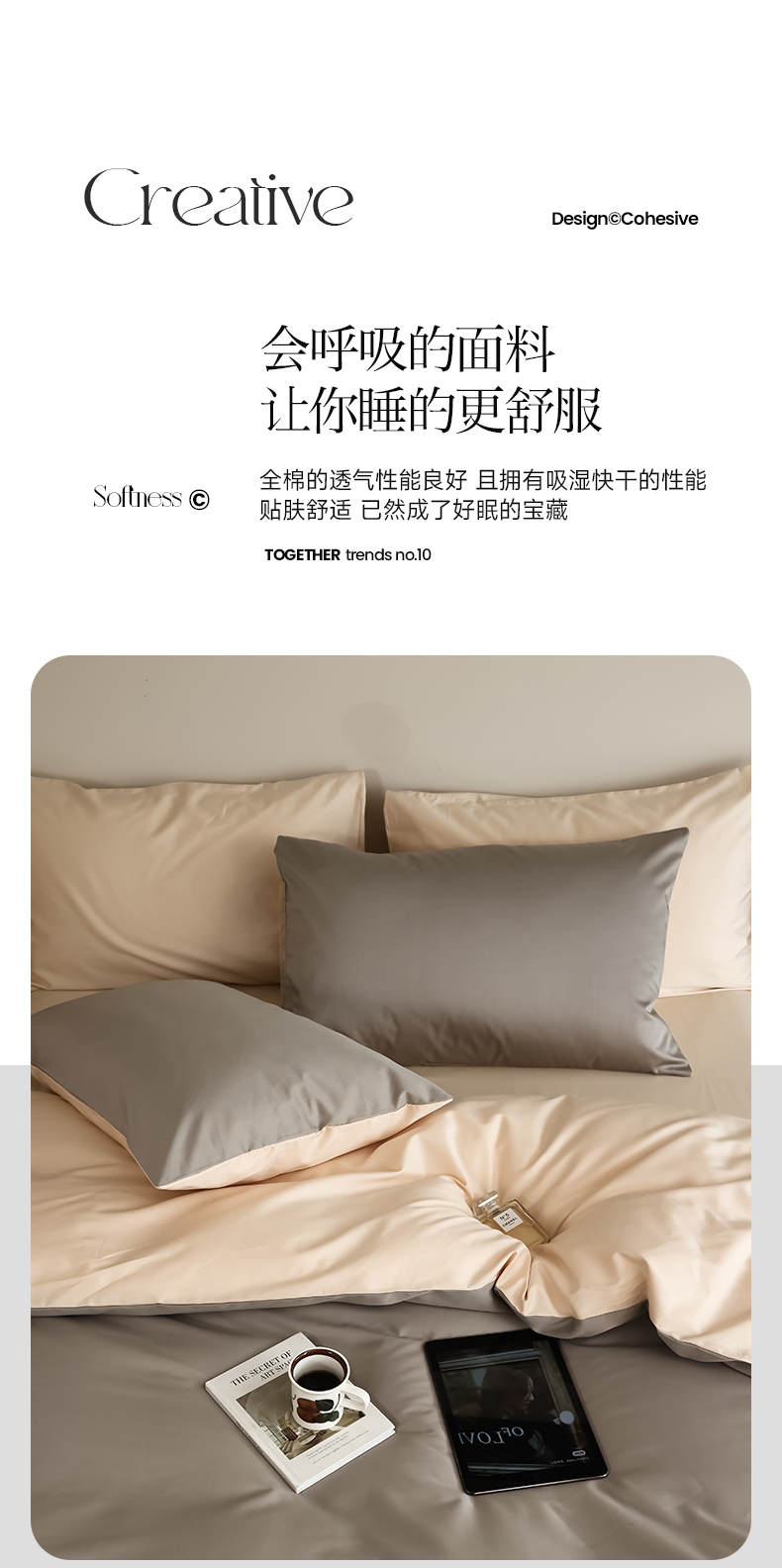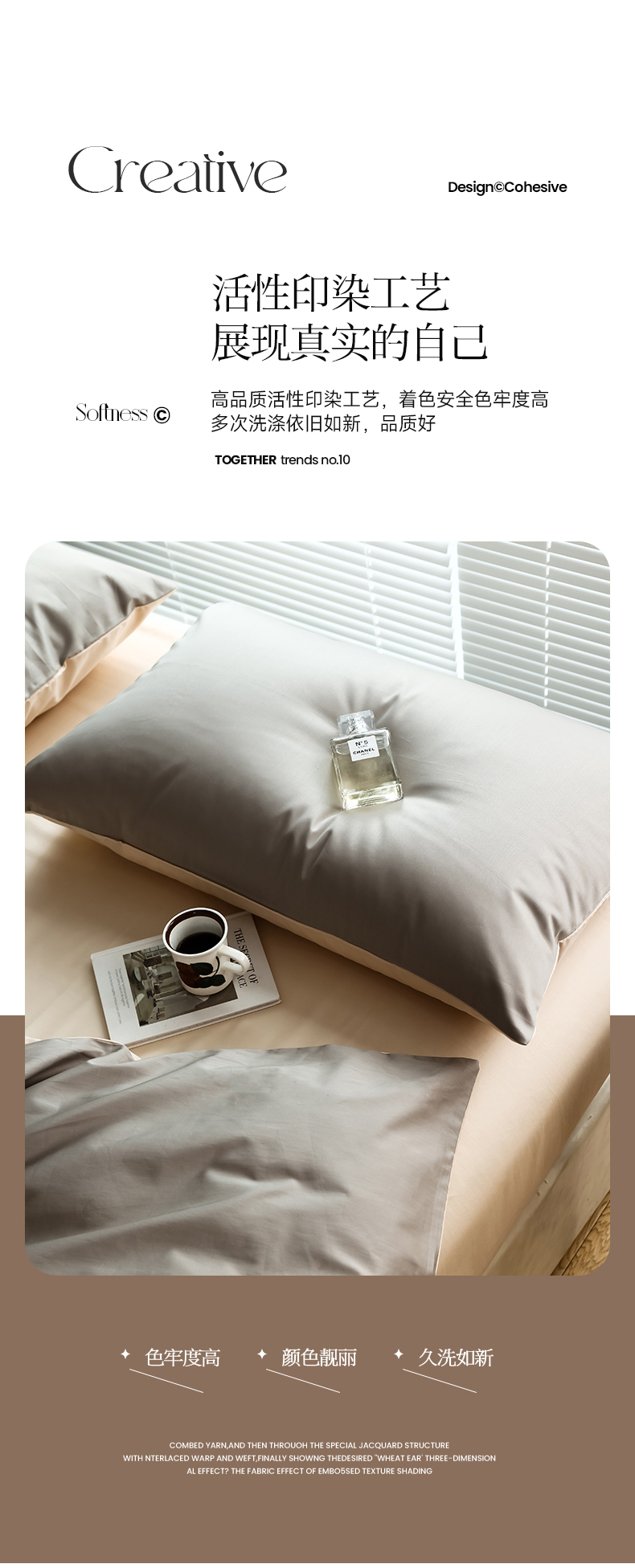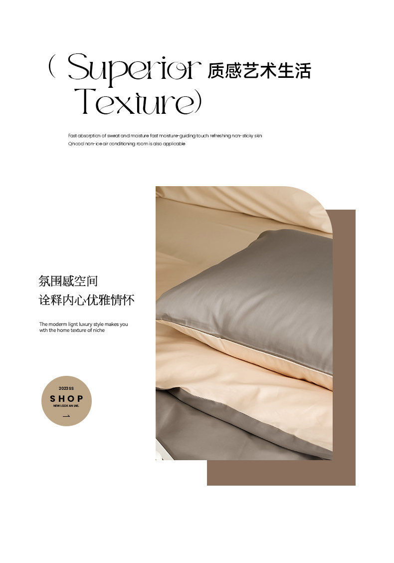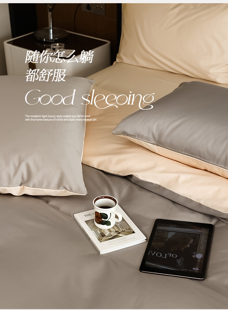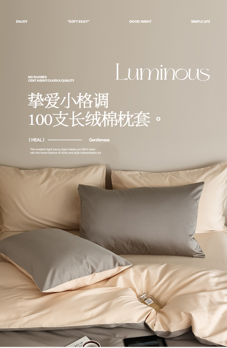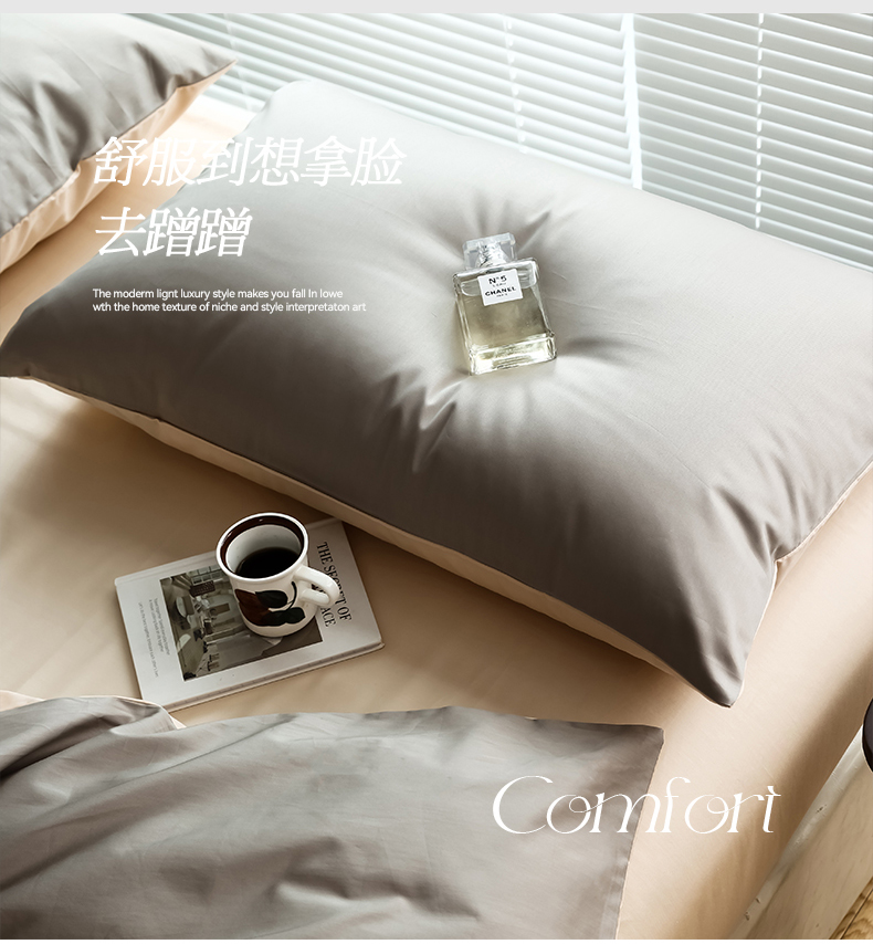 商品名称:寐眠 2023新款100支纯棉套件单枕套 太空灰香草米