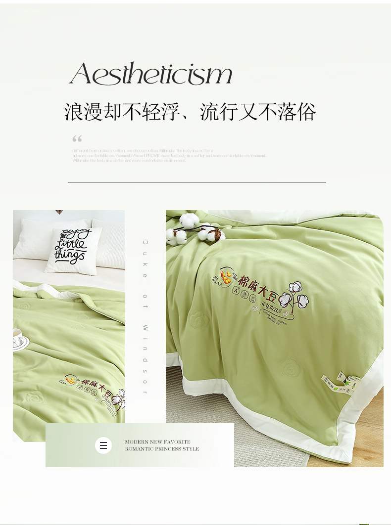 商品名称:芯恋2025新款棉麻大豆夏凉被 果绿