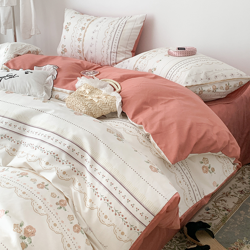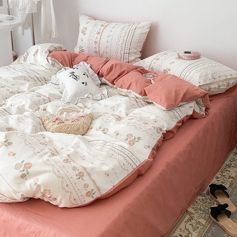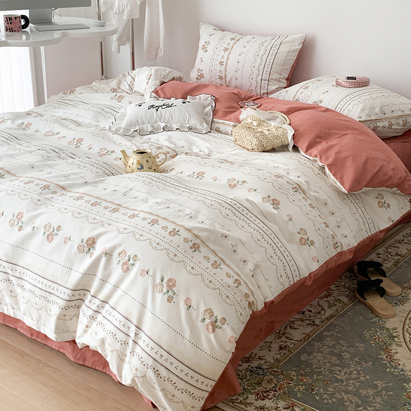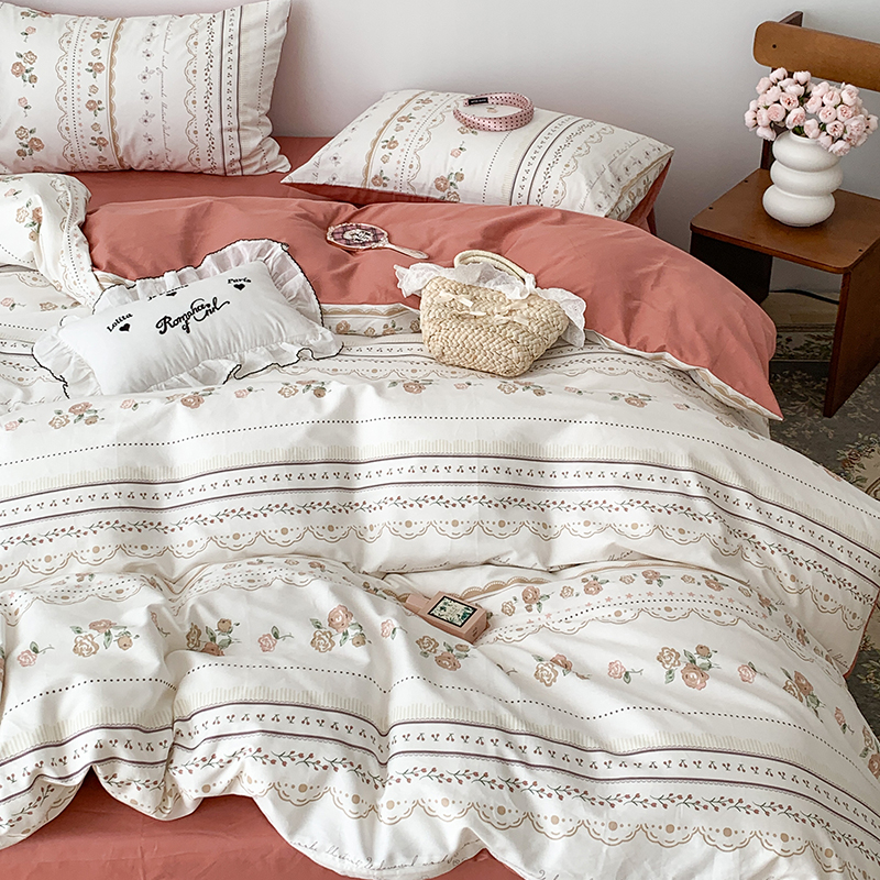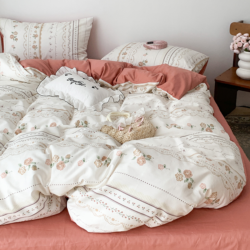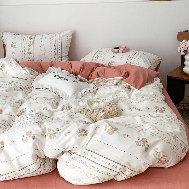 昔可家纺 2023新款全棉怦然心动小花系列四件套 英国梨与小苍兰