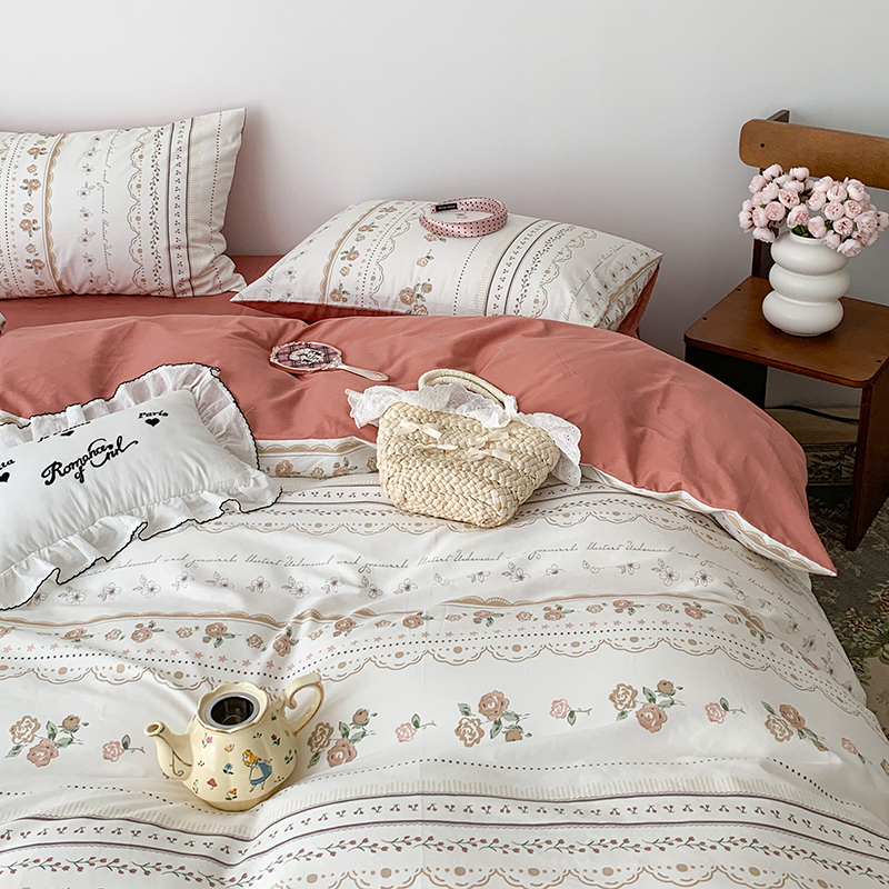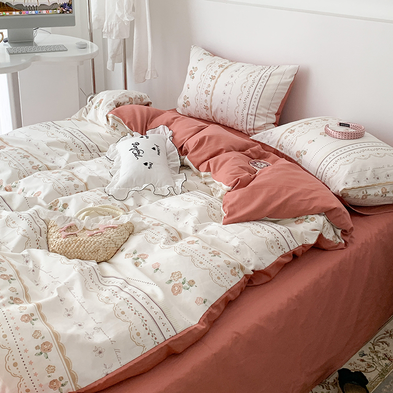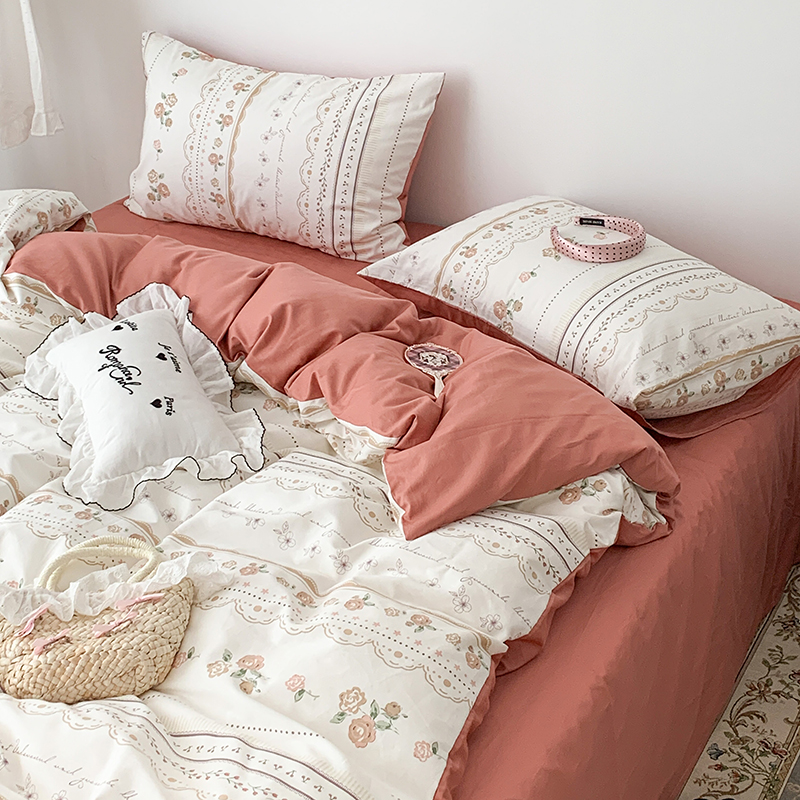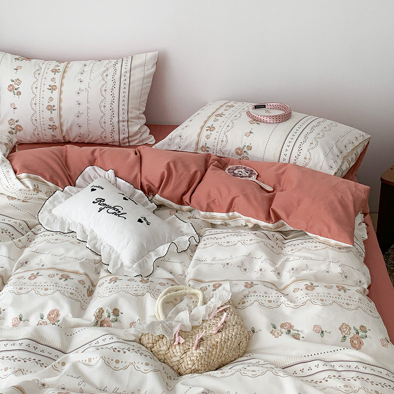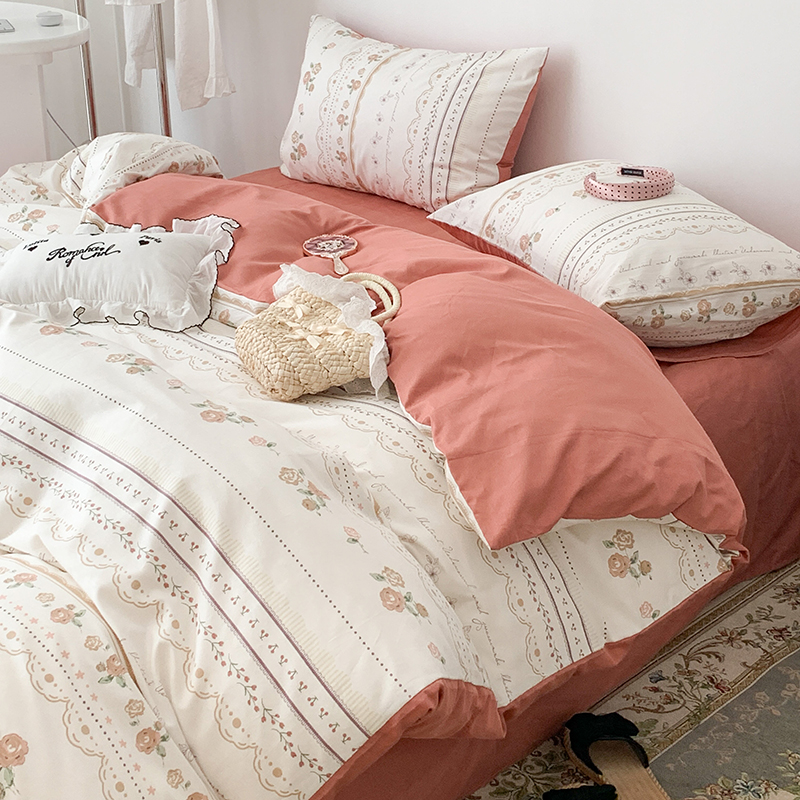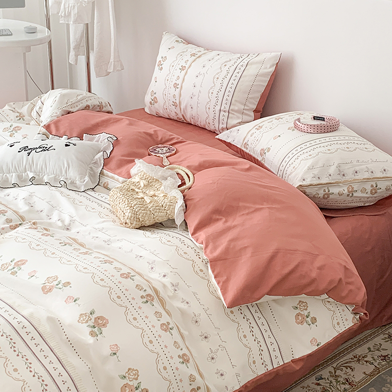 昔可家纺 2023新款全棉怦然心动小花系列四件套 英国梨与小苍兰