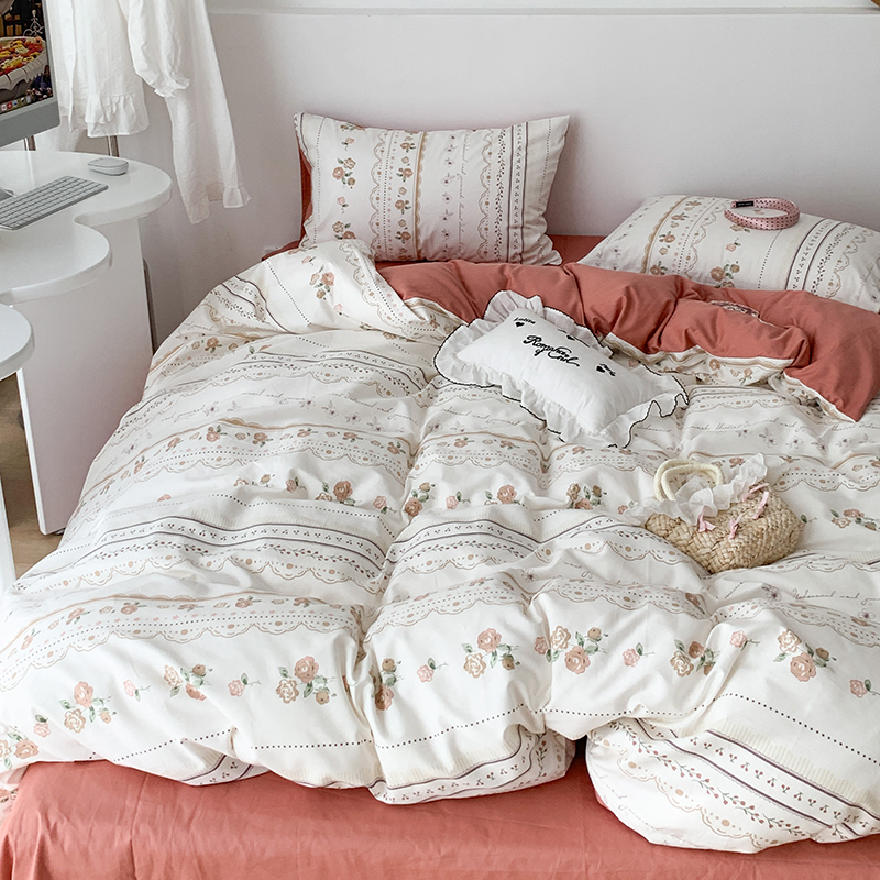 商品名称:昔可家纺 2023新款全棉怦然心动小花系列四件套 英国梨与小苍兰