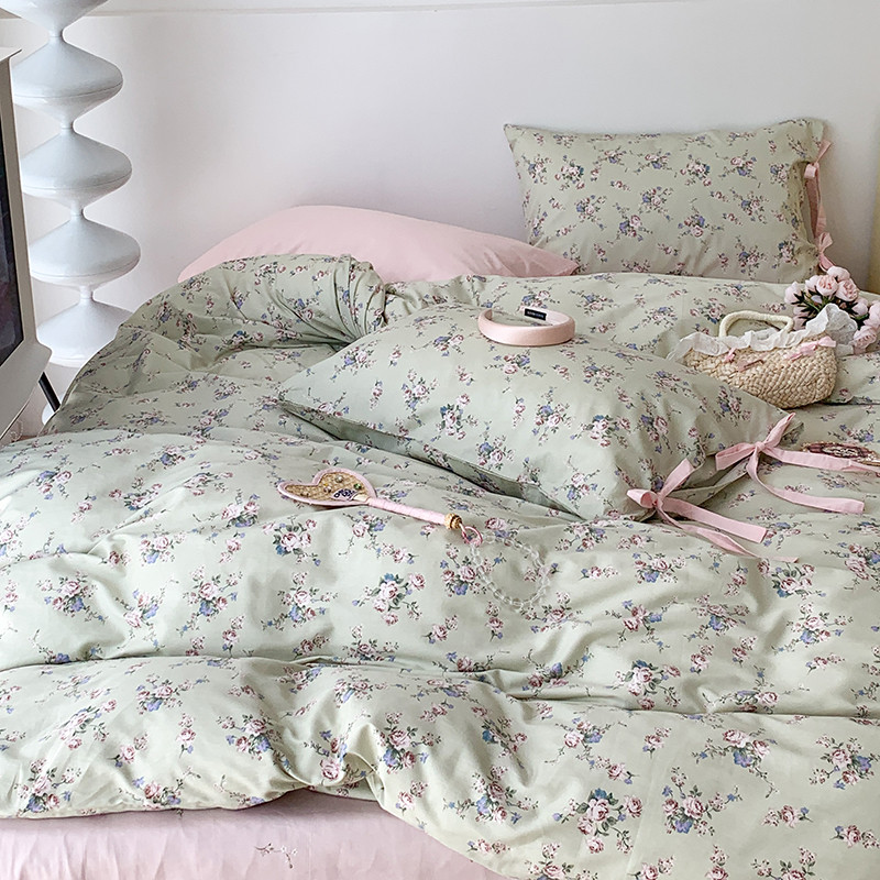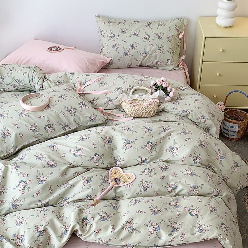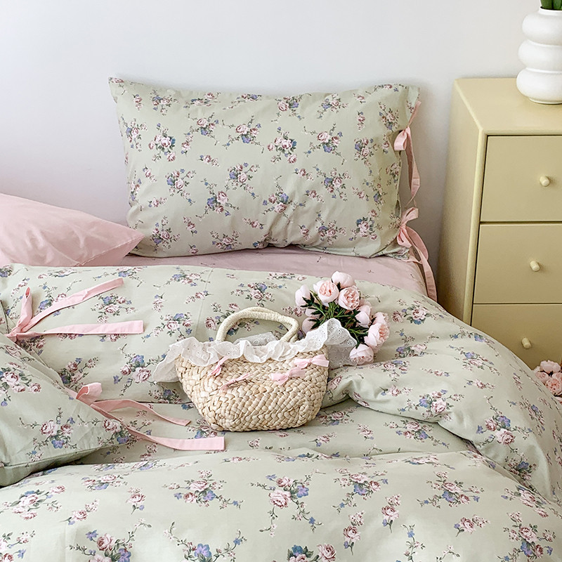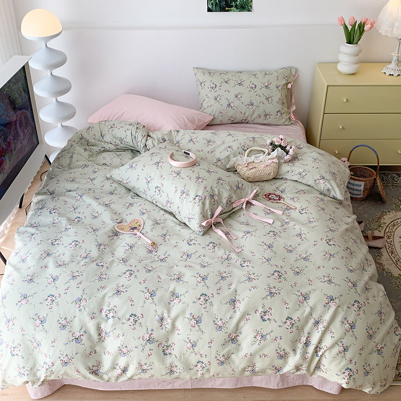 商品名称:昔可家纺 2023新款全棉蝴蝶结枕套普通款四件套 莫奈幻想