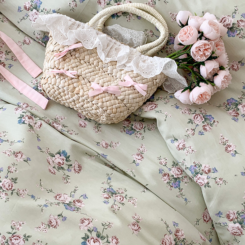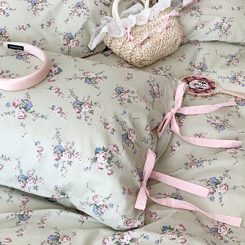 昔可家纺 2023新款全棉蝴蝶结枕套普通款四件套 莫奈幻想
