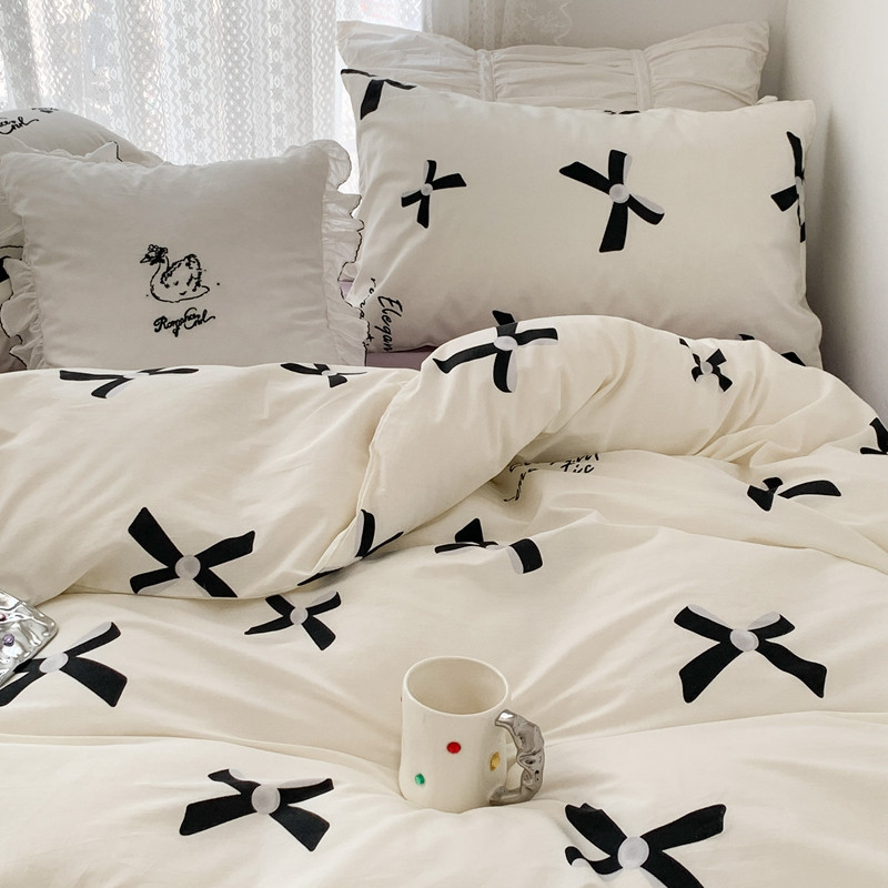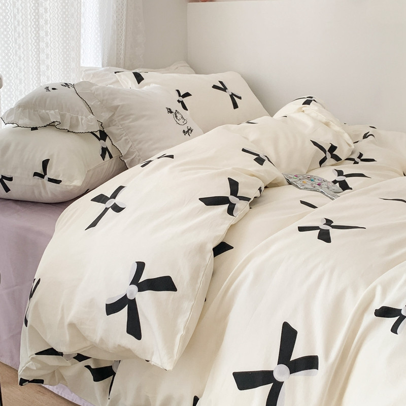 昔可 2023新款全棉四件套 珍珠蝴蝶结