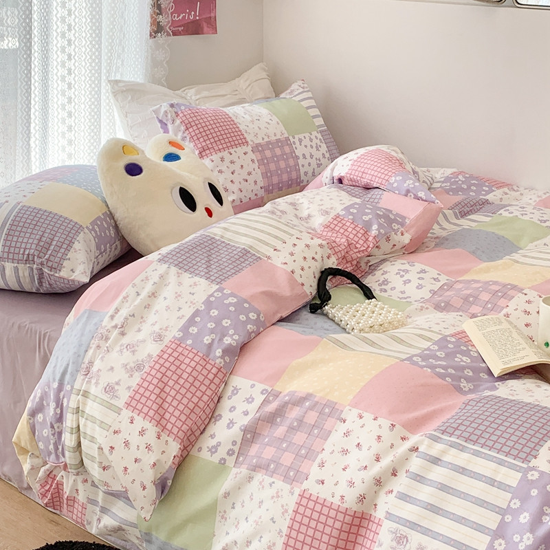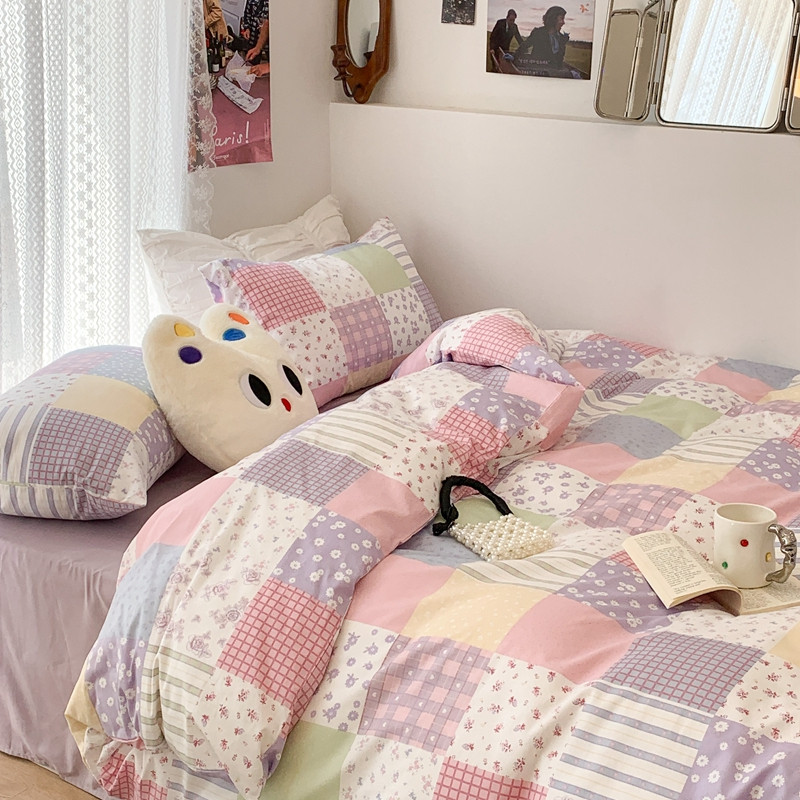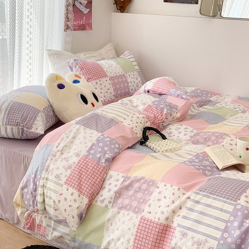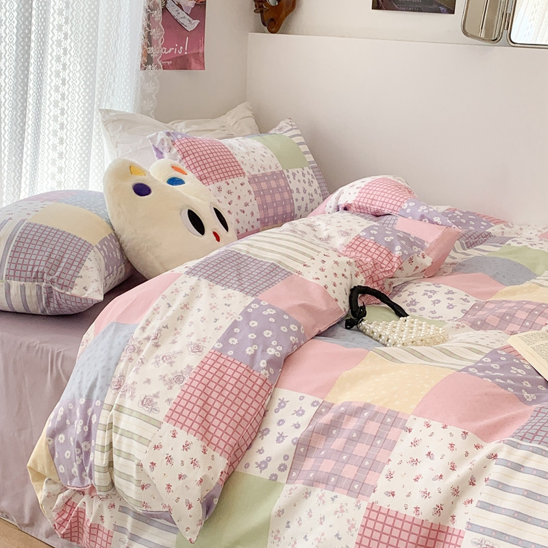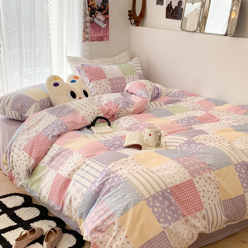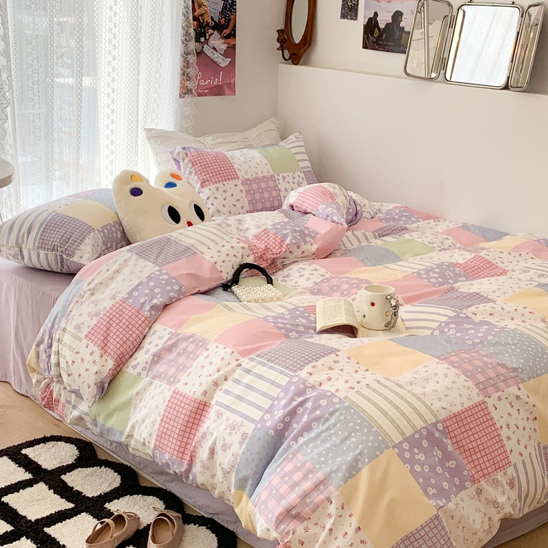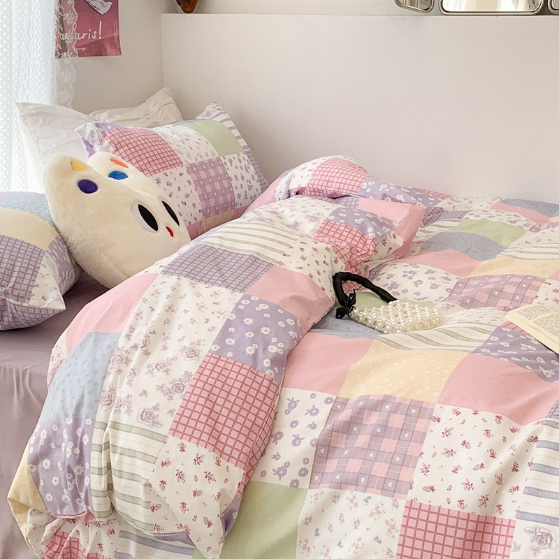 商品名称:昔可 2023新款全棉四件套 拼接格子碎花