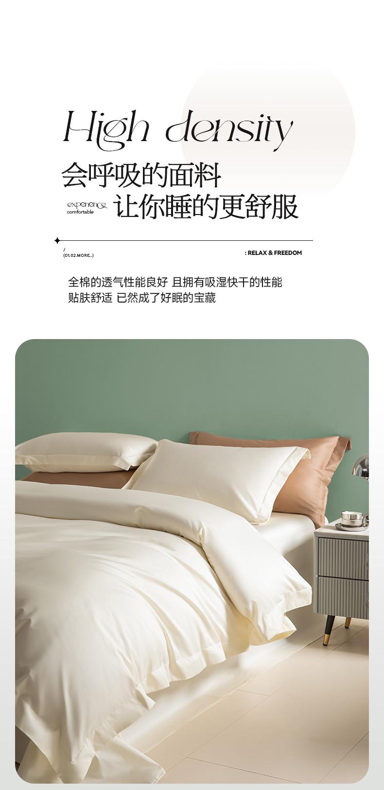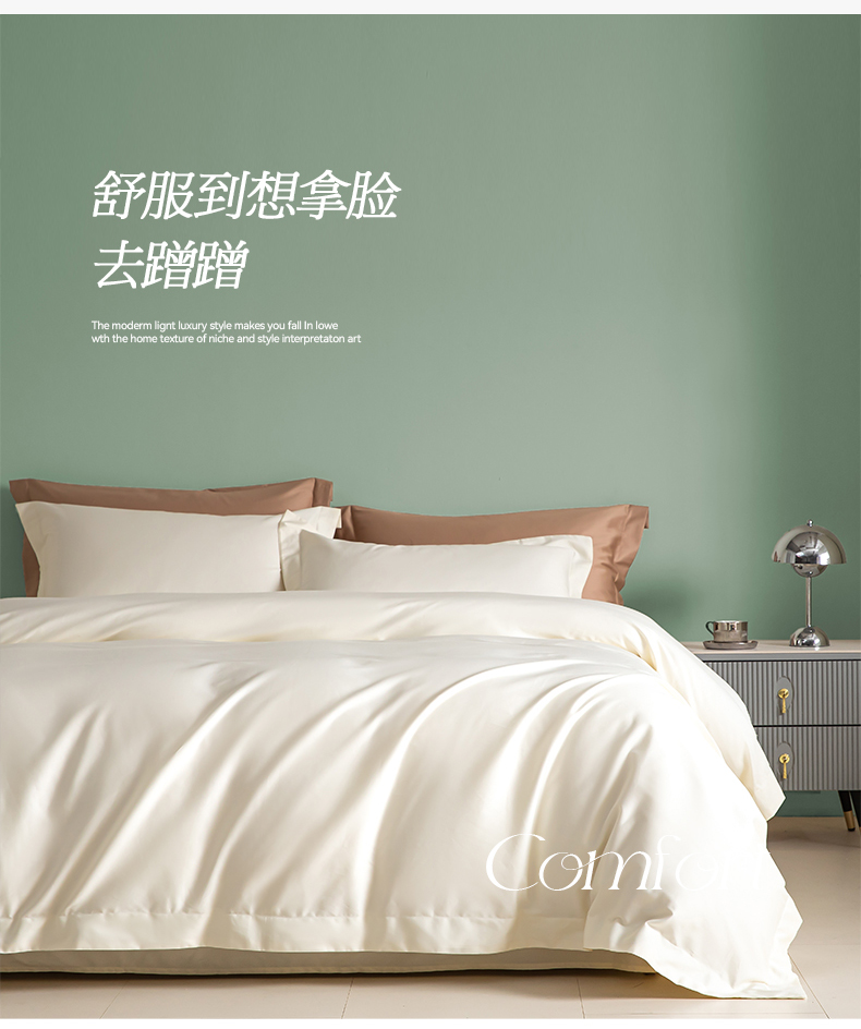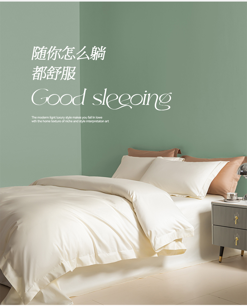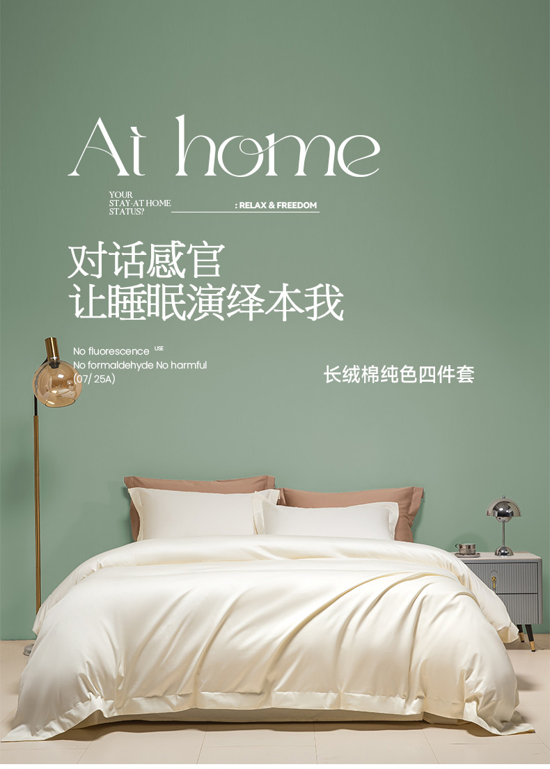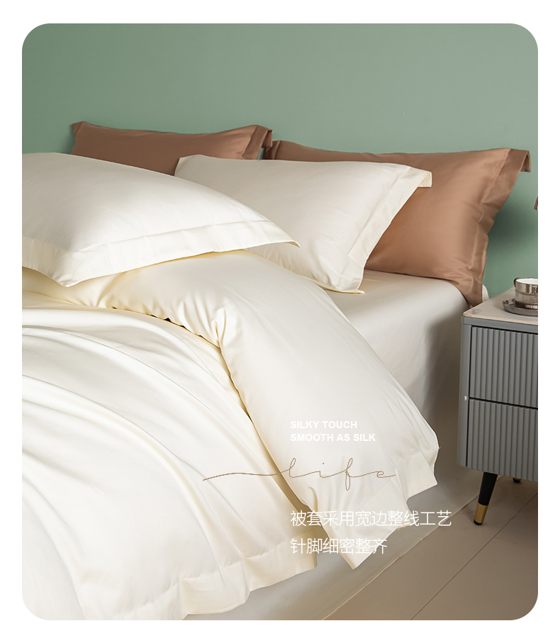 艾佳 2025新款50s长绒棉纯色四件套 象牙白
