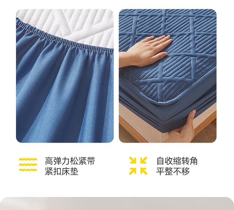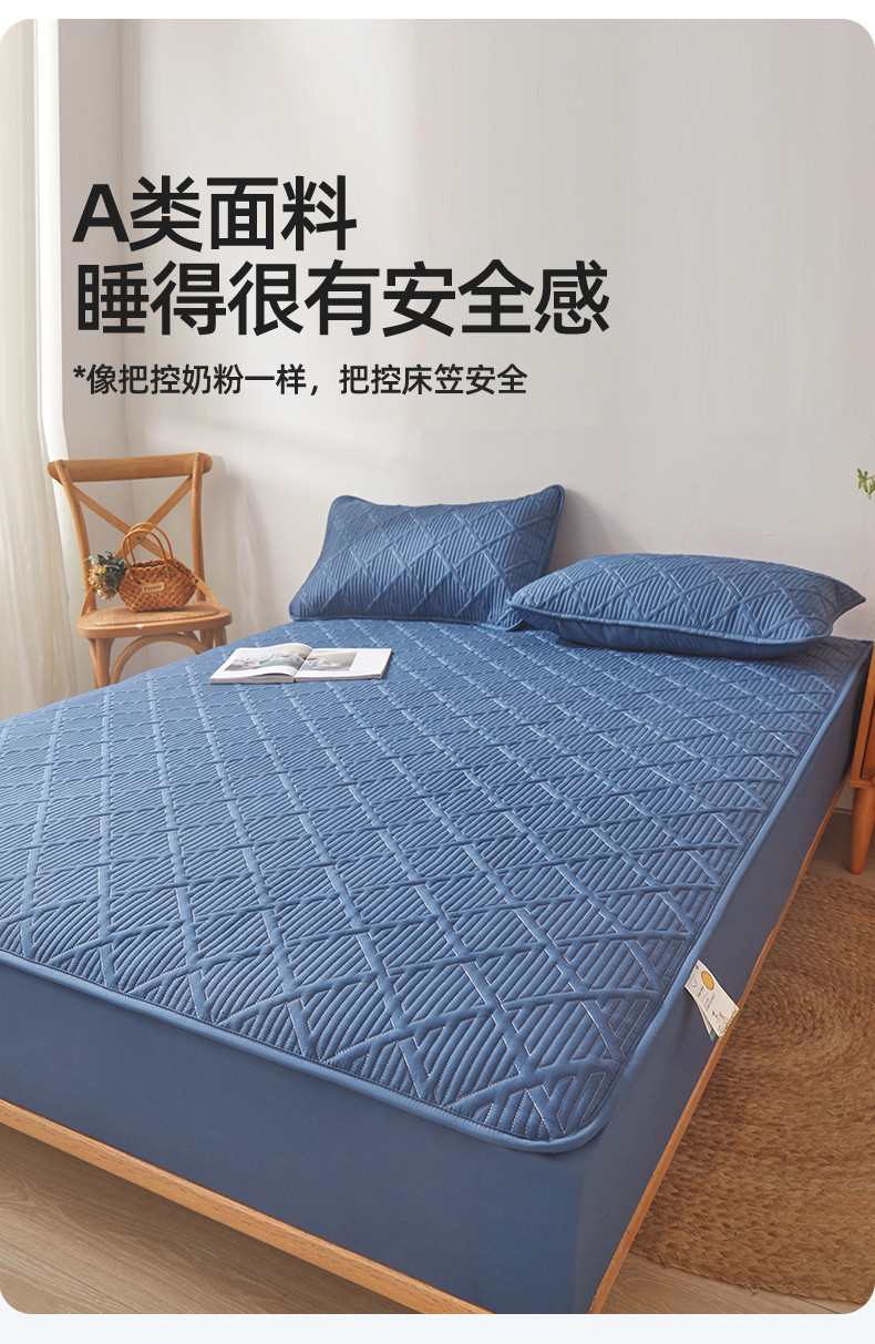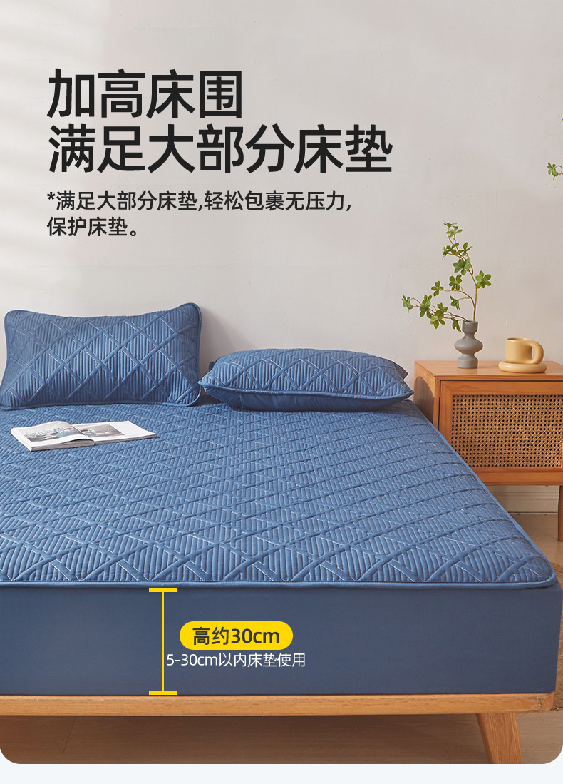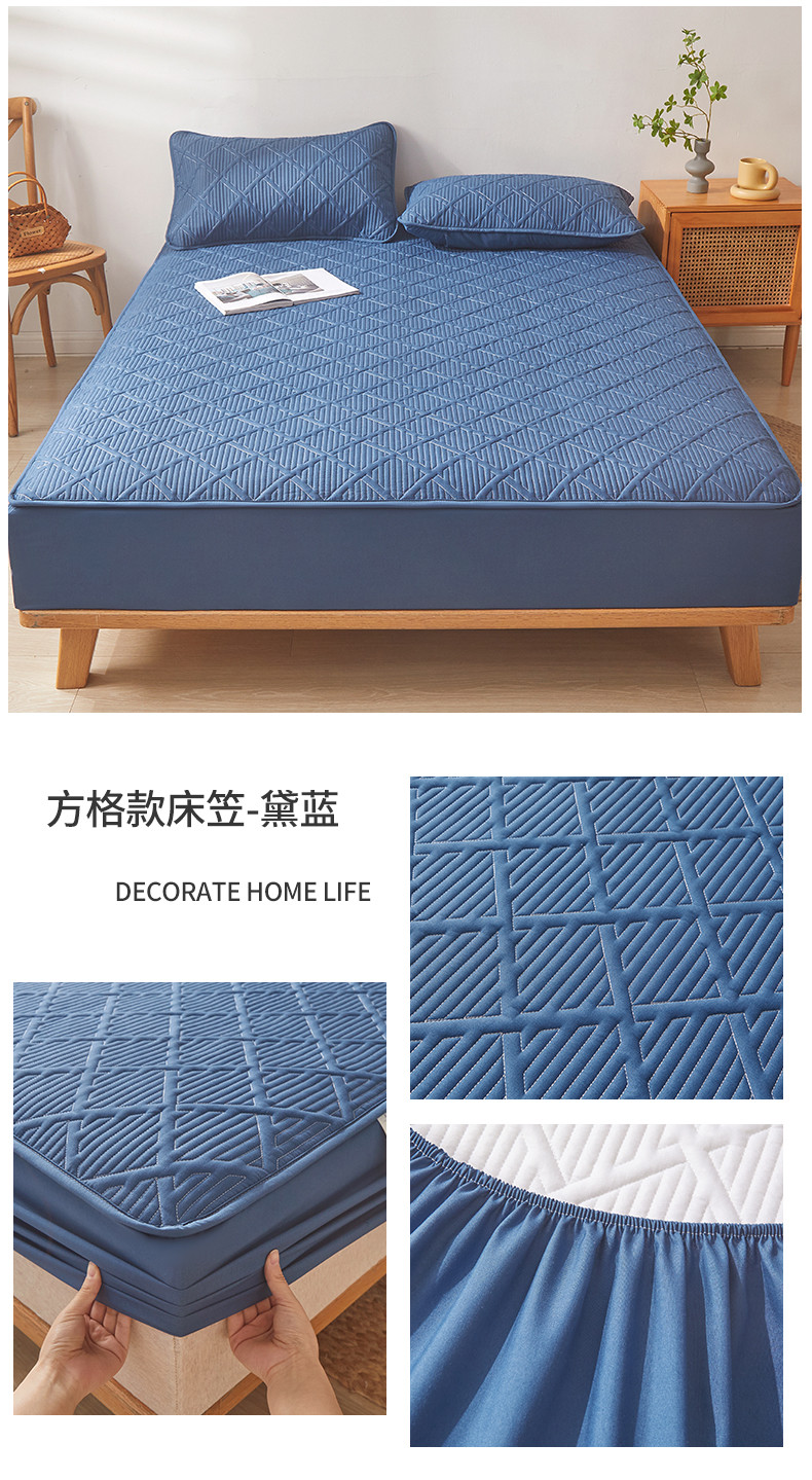 雯豆家纺 2025春秋冬季新品加厚款A类夹棉床笠纯色床垫保护罩 方格款床笠-黛蓝