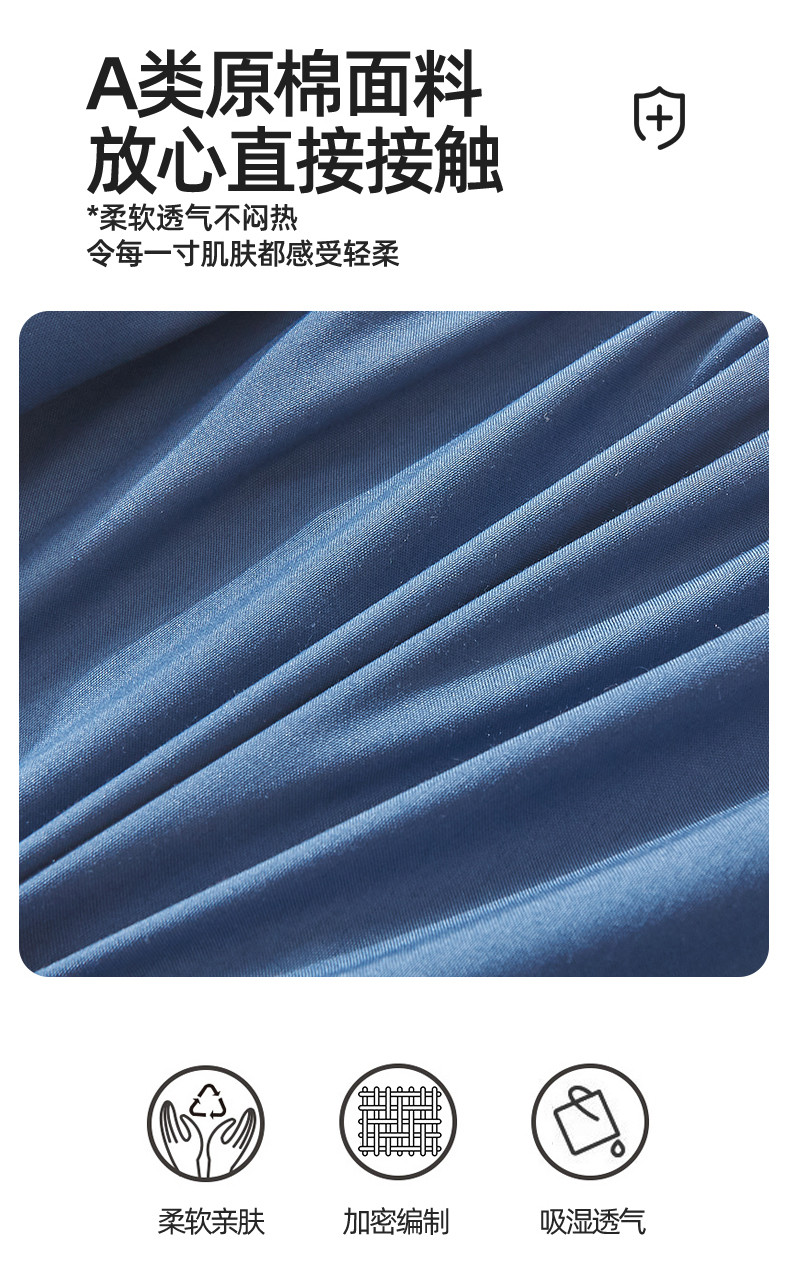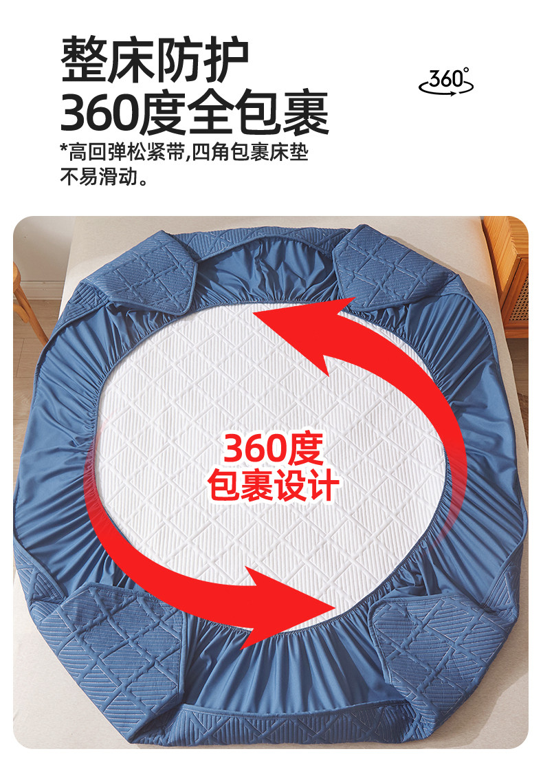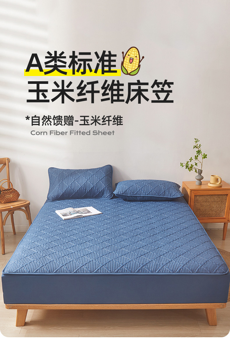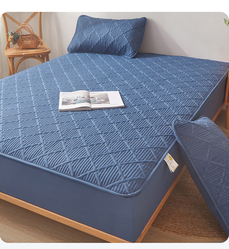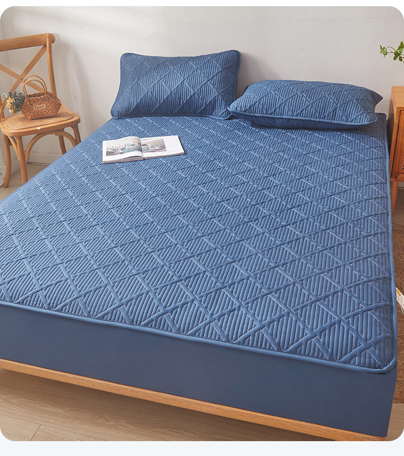 雯豆家纺 2025春秋冬季新品加厚款A类夹棉床笠纯色床垫保护罩 方格款床笠-黛蓝