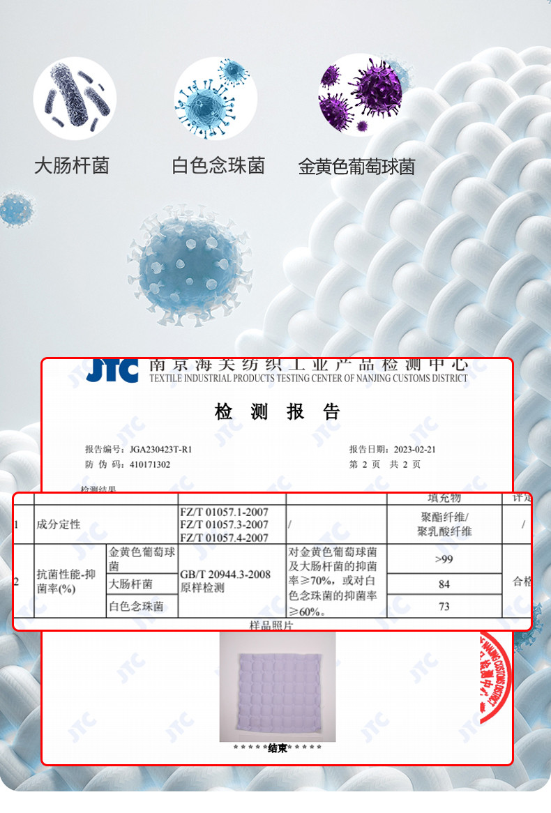 4、通州区市场监管局川姜分局友情提醒:近期针对抗静电,无静电,抗菌防螨,及有关舒适度,百分比的举报高发。为不影响商品正常销售,请各商家高度重视,自检自查及时整改,谢谢配合!