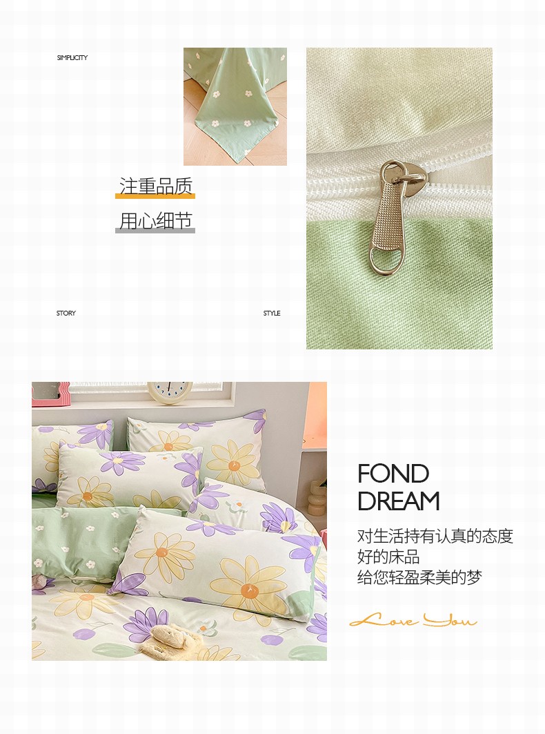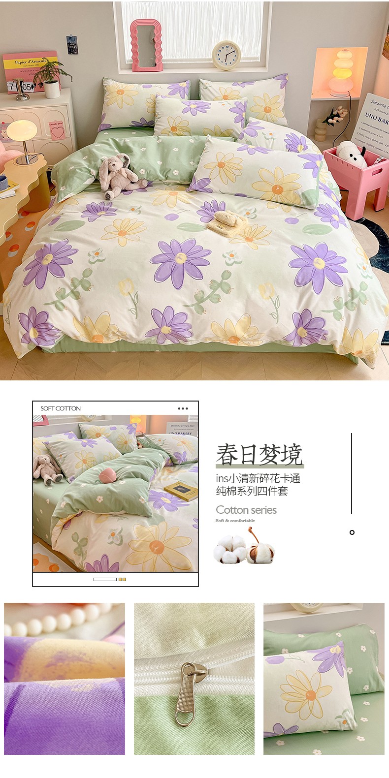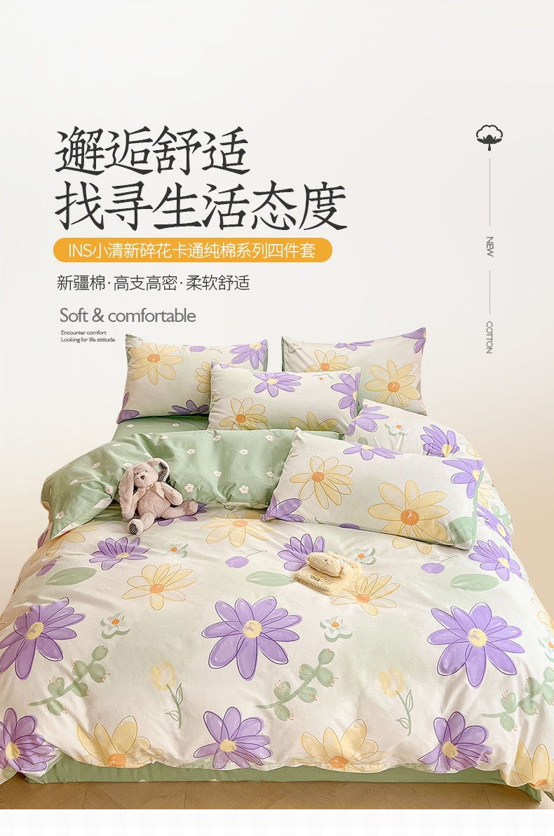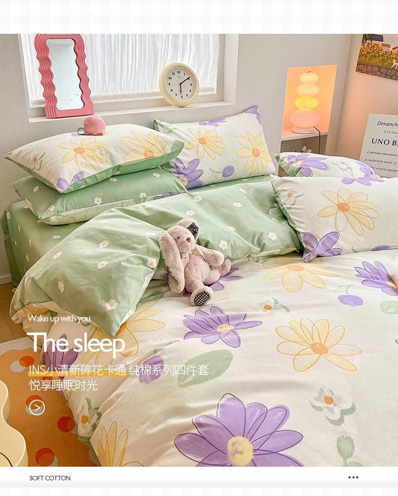 商品名称:桃子 2023新款ins小清新碎花卡通纯棉系列四件套 棉-春日梦境