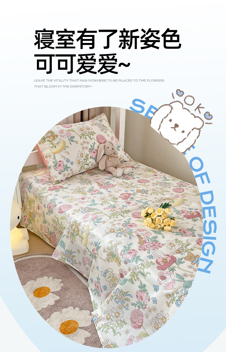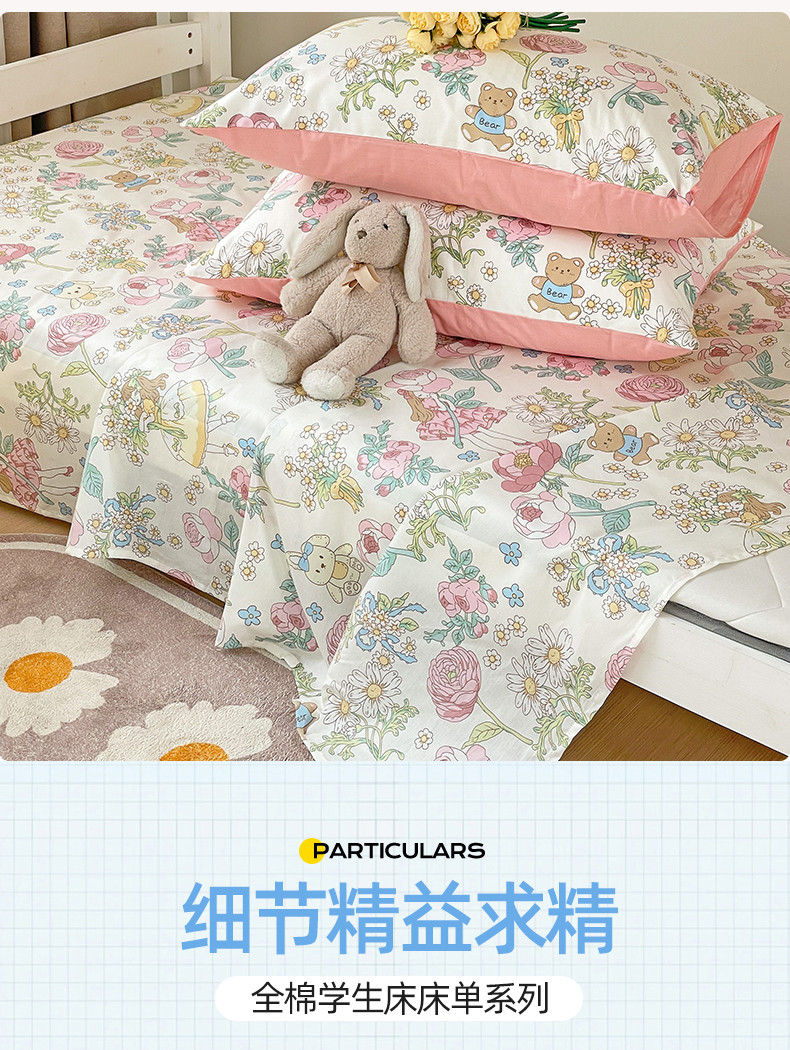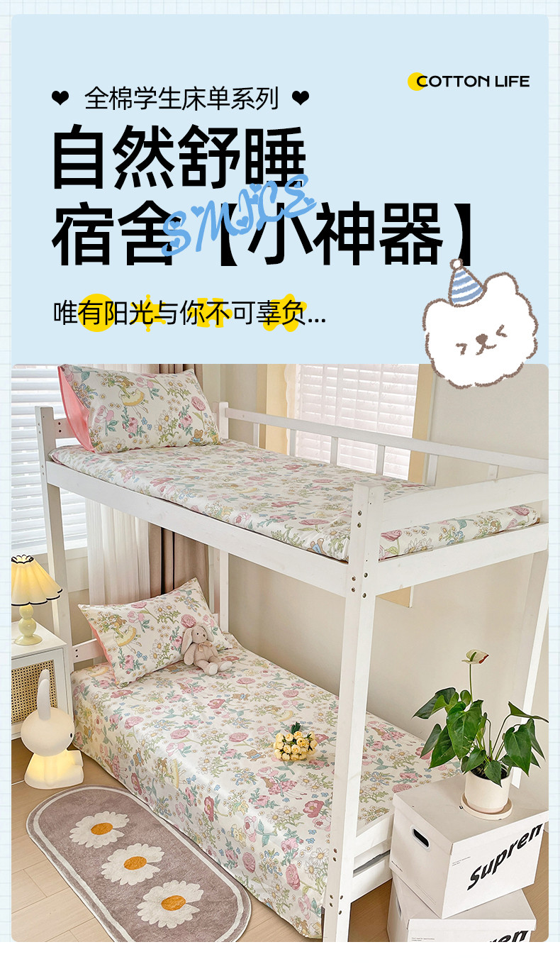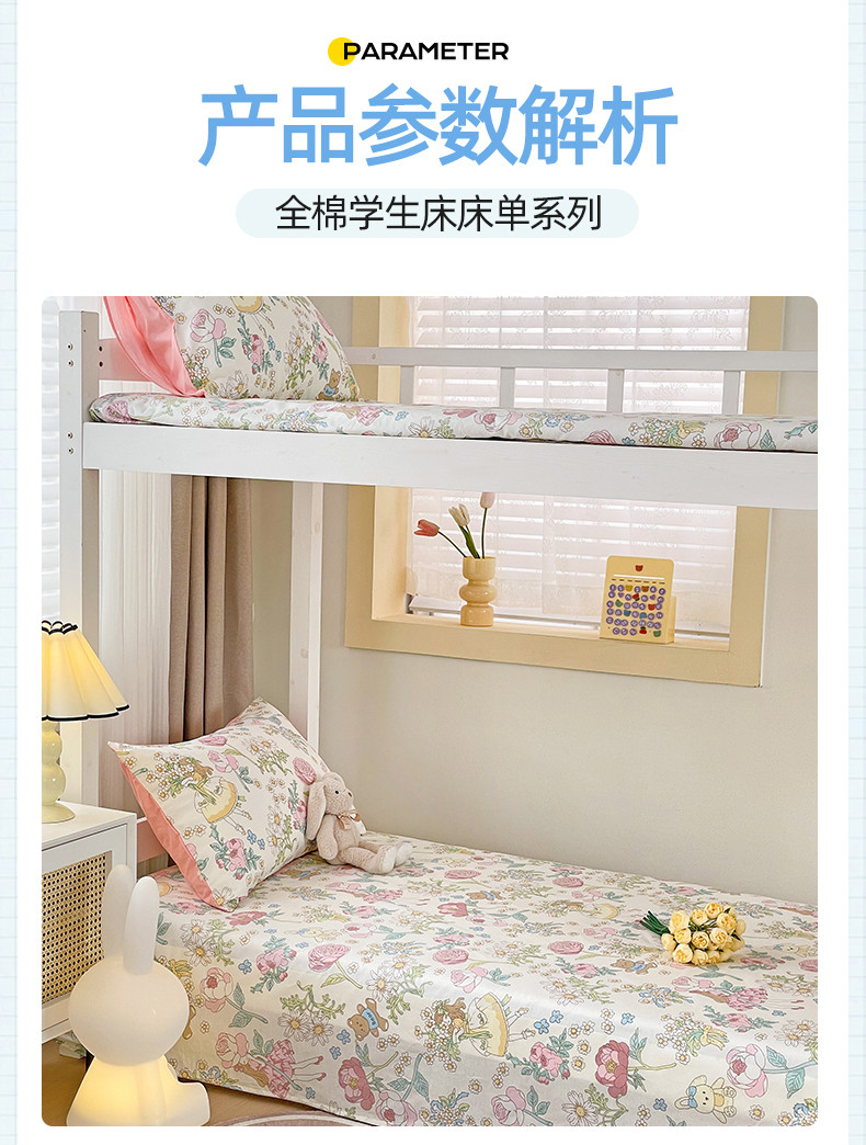• 91家纺网 家纺一手货源 找家纺 名兮 2023新款全棉学生上下铺床单 玛丽春天