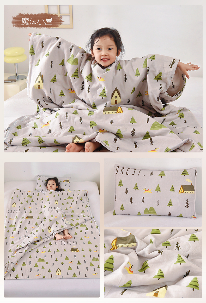 商品名称:A类夏季纯棉睡袋双层纱棉花薄款春秋宝宝中大童儿童防踢被神器 魔法小屋