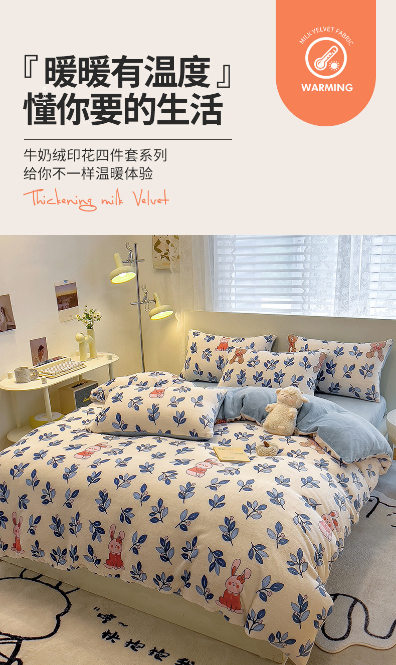 • 91家纺网 家纺一手货源 找家纺 芃成 2023新款牛奶绒印花单被套 菲菲兔