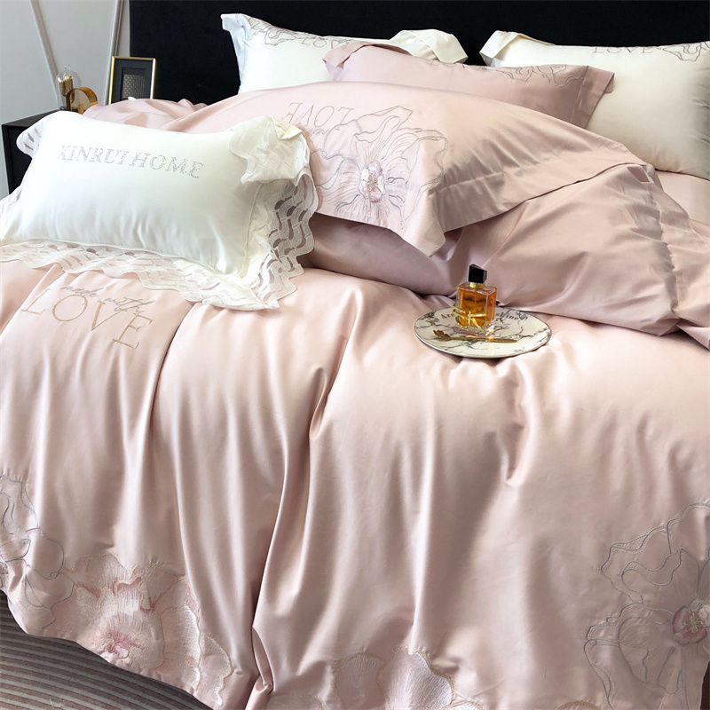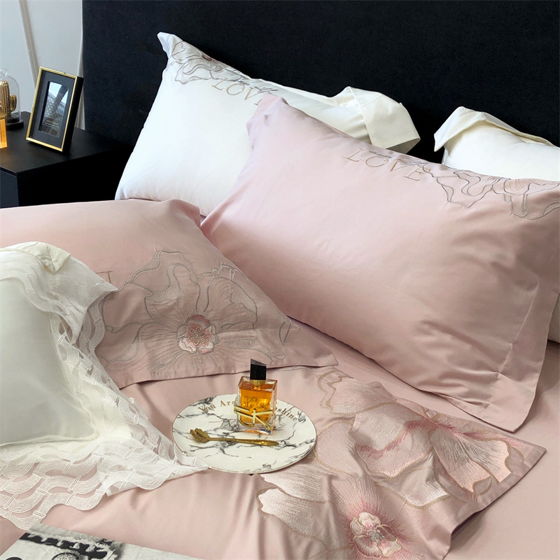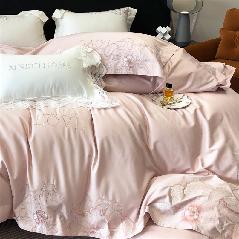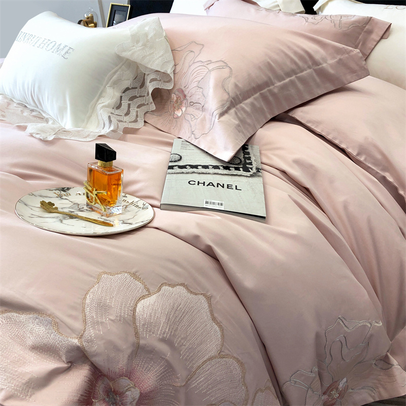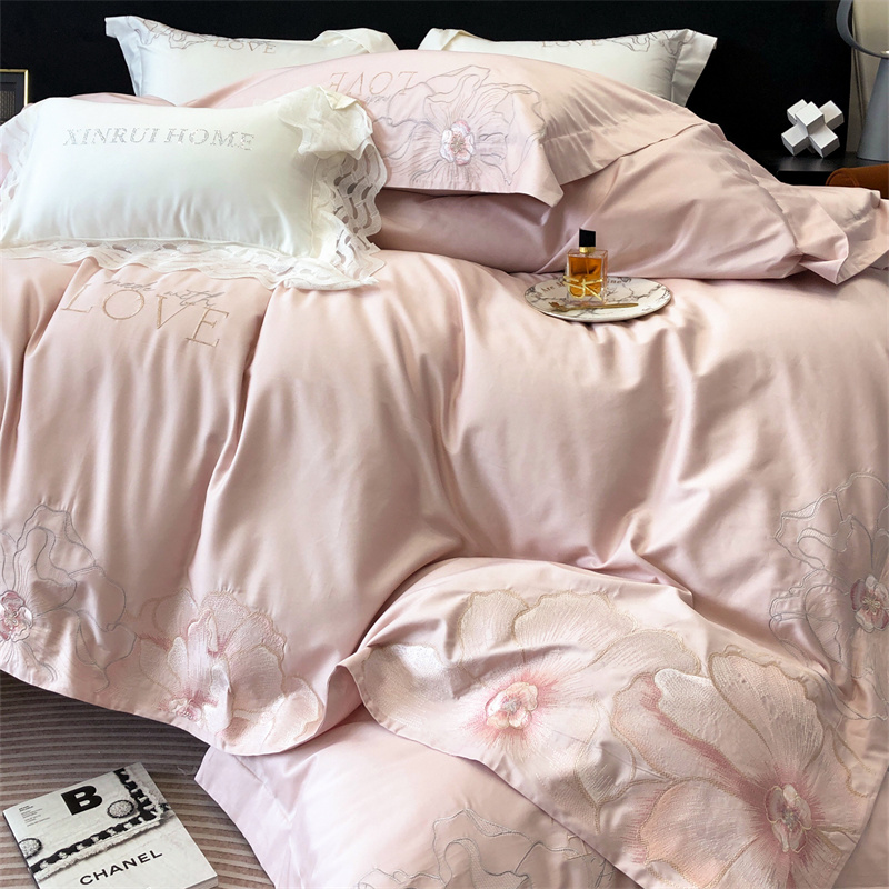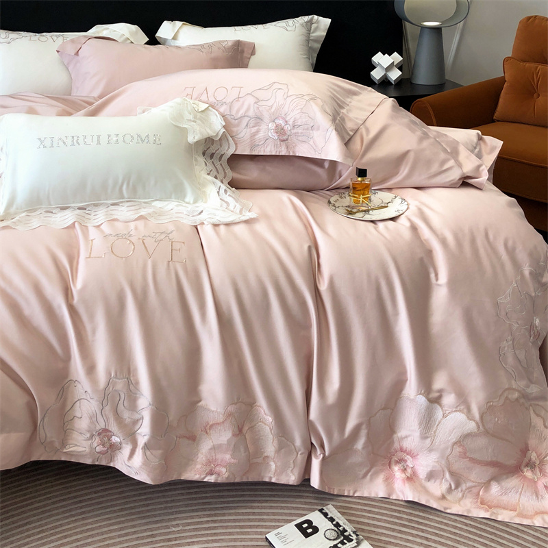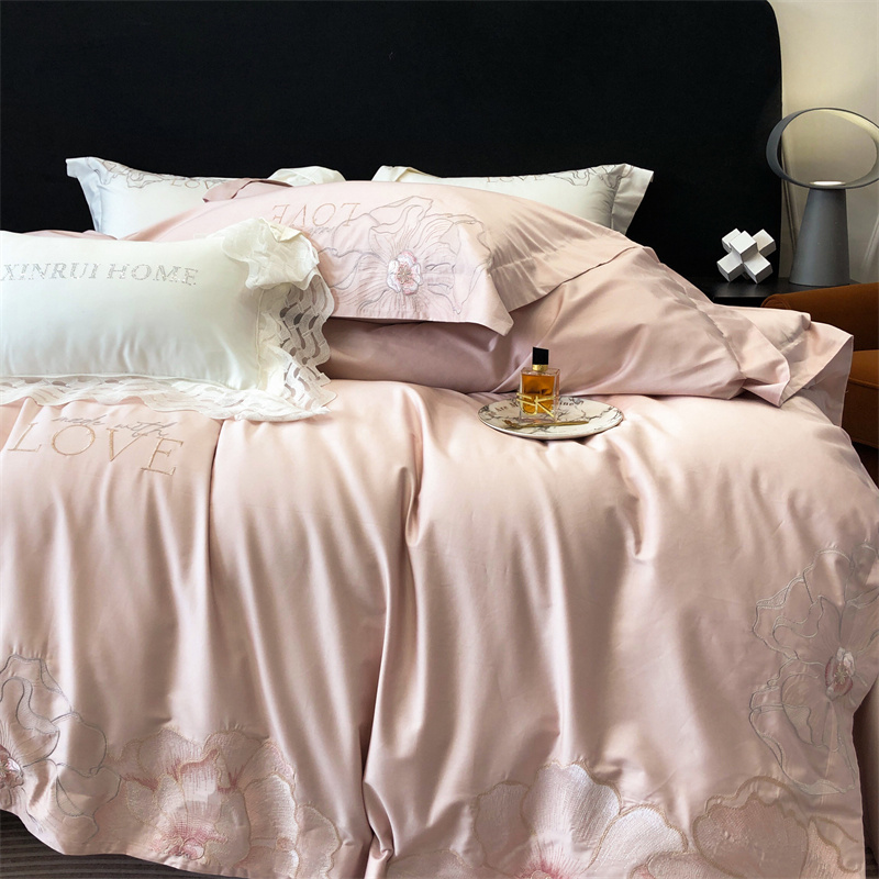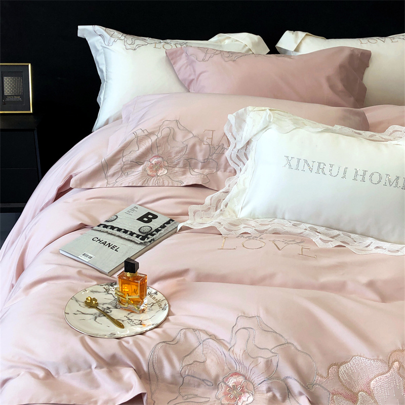 商品名称:馨蕊 2023秋冬新品100支高定轻奢风四件套-棉花恋 棉花恋-初夏粉