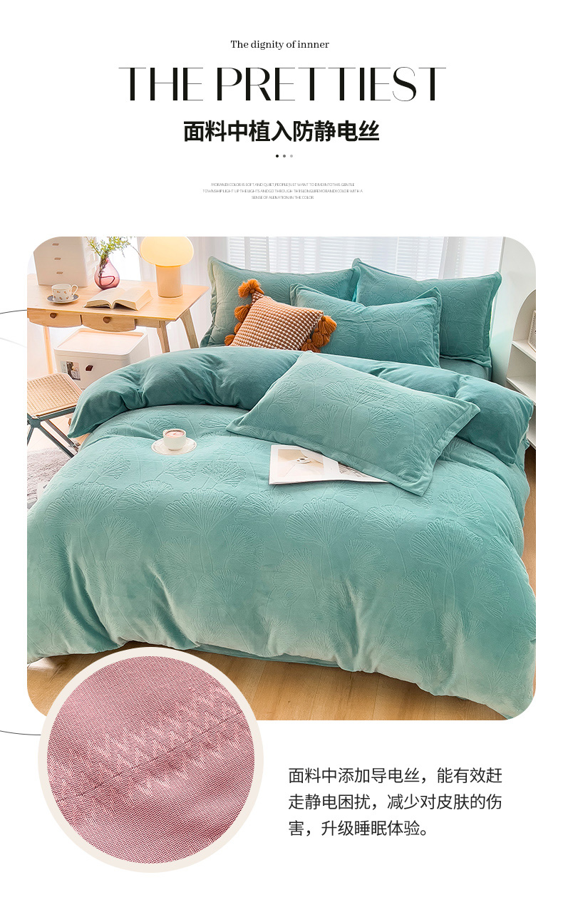 当前位置: 91家纺网 > 商品网购 > 床品套件 > 四件套 > 牛奶绒四件套 > 新品牛奶绒烂花230克四件套可定做 银杏叶-绿