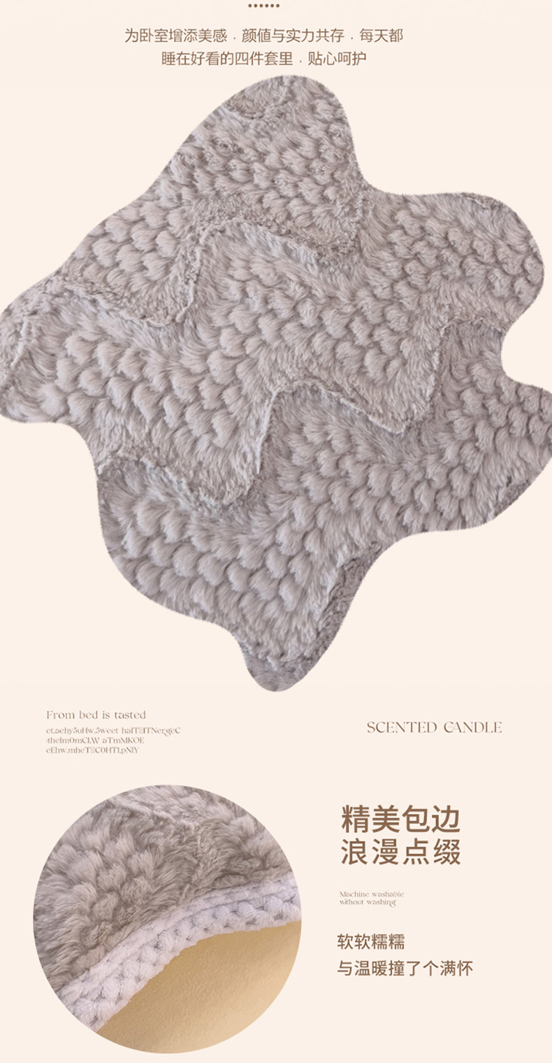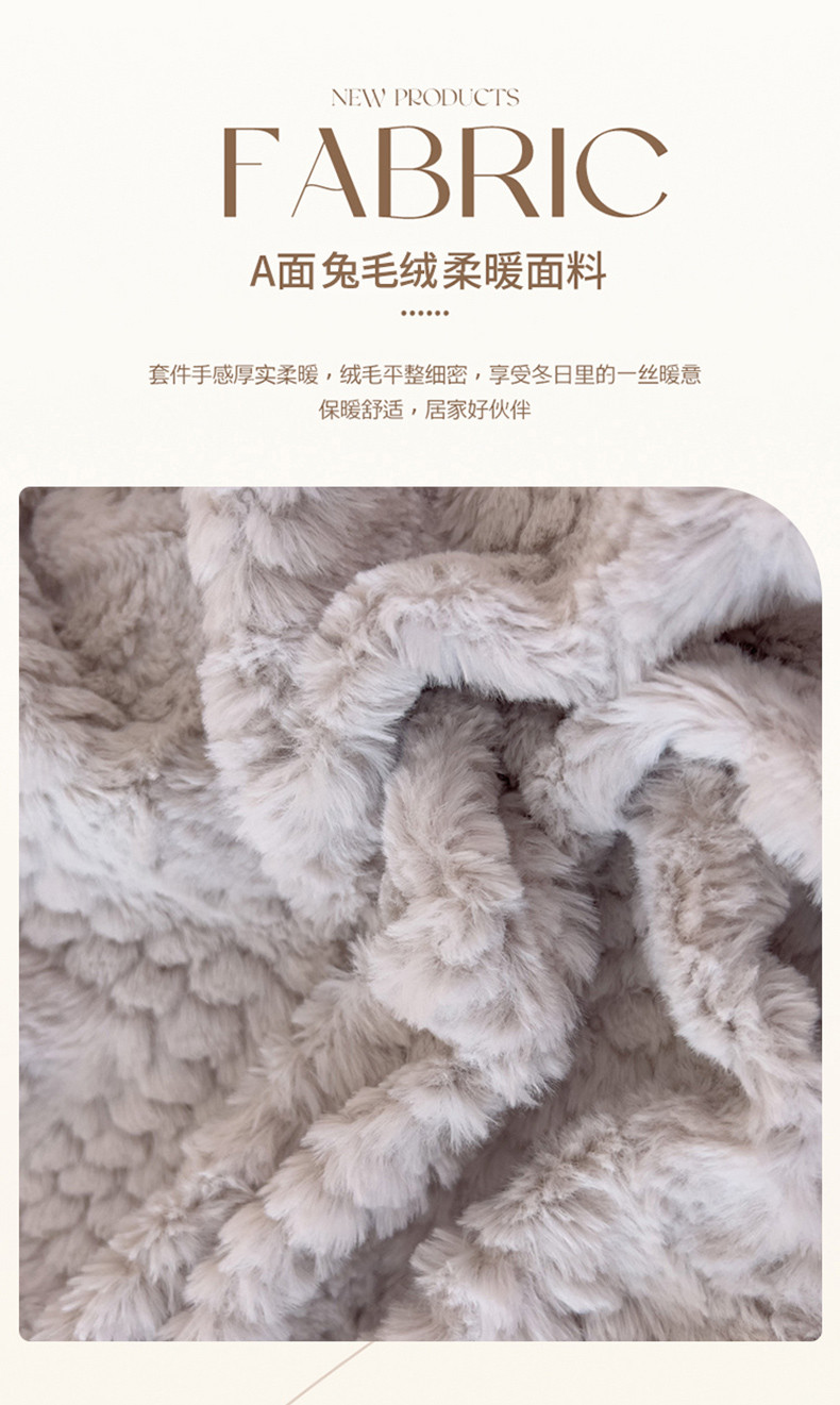 商品名称:菲儿家纺 2023新款小兔毛绒立体剪花四件套 小兔毛-波浪灰