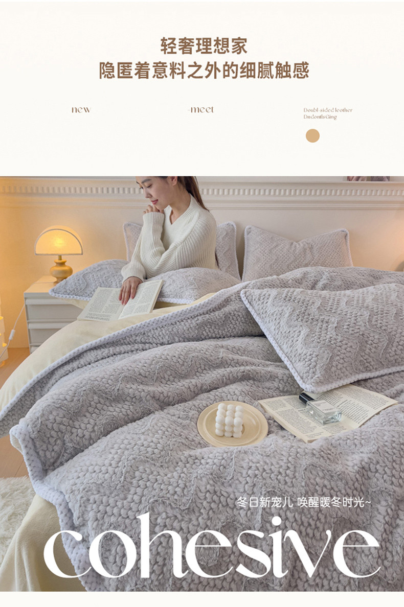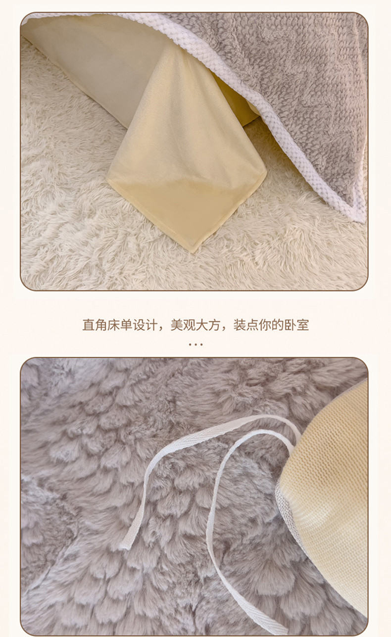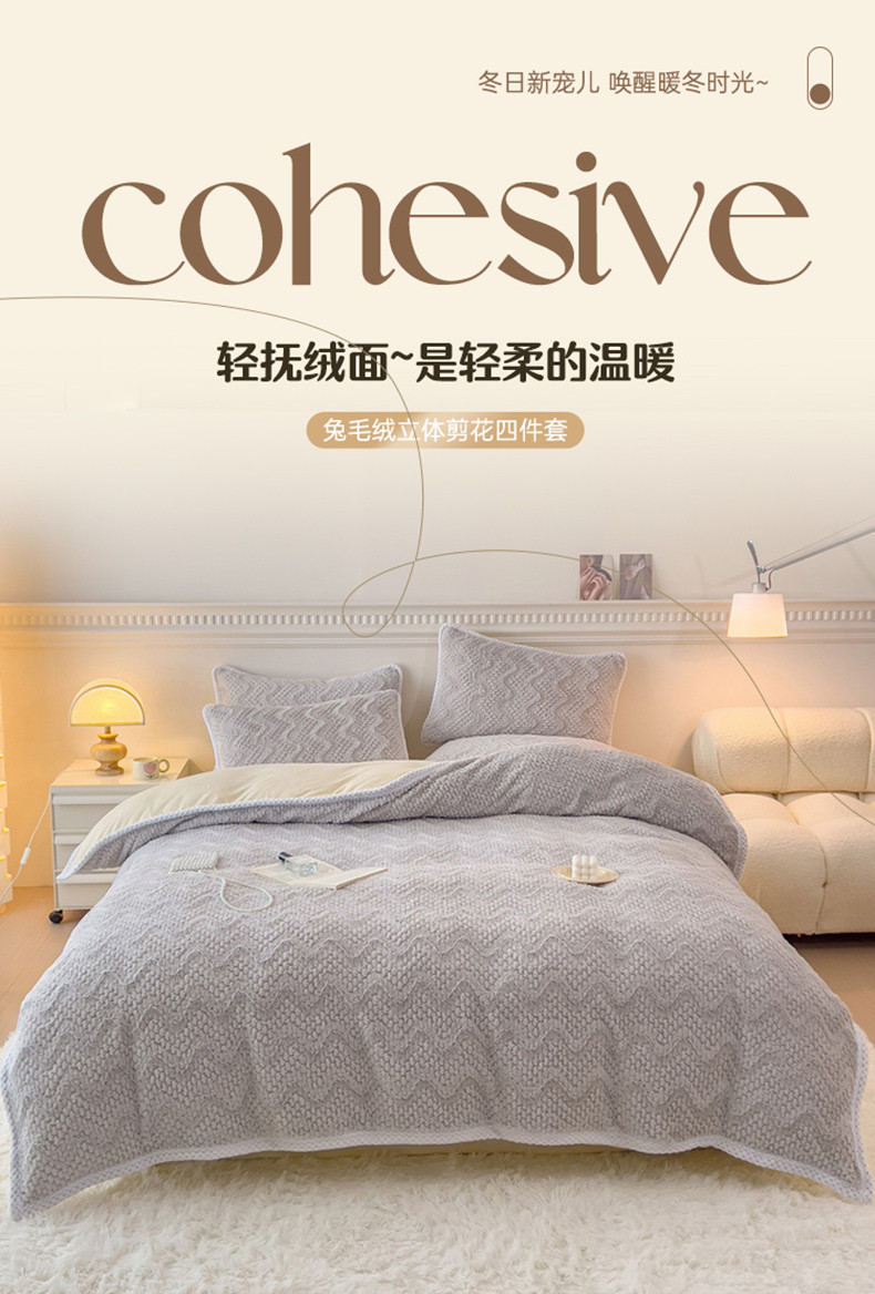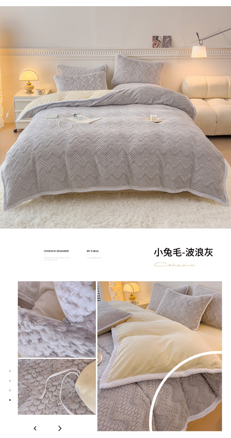 菲儿家纺 2023新款小兔毛绒立体剪花四件套 小兔毛-波浪灰