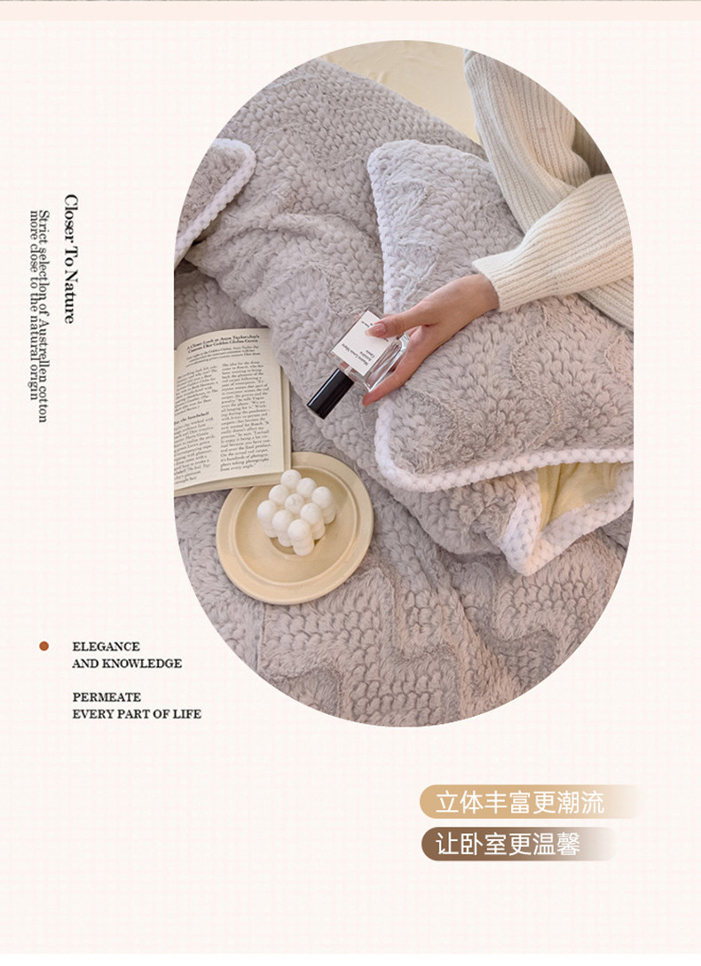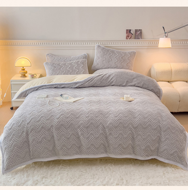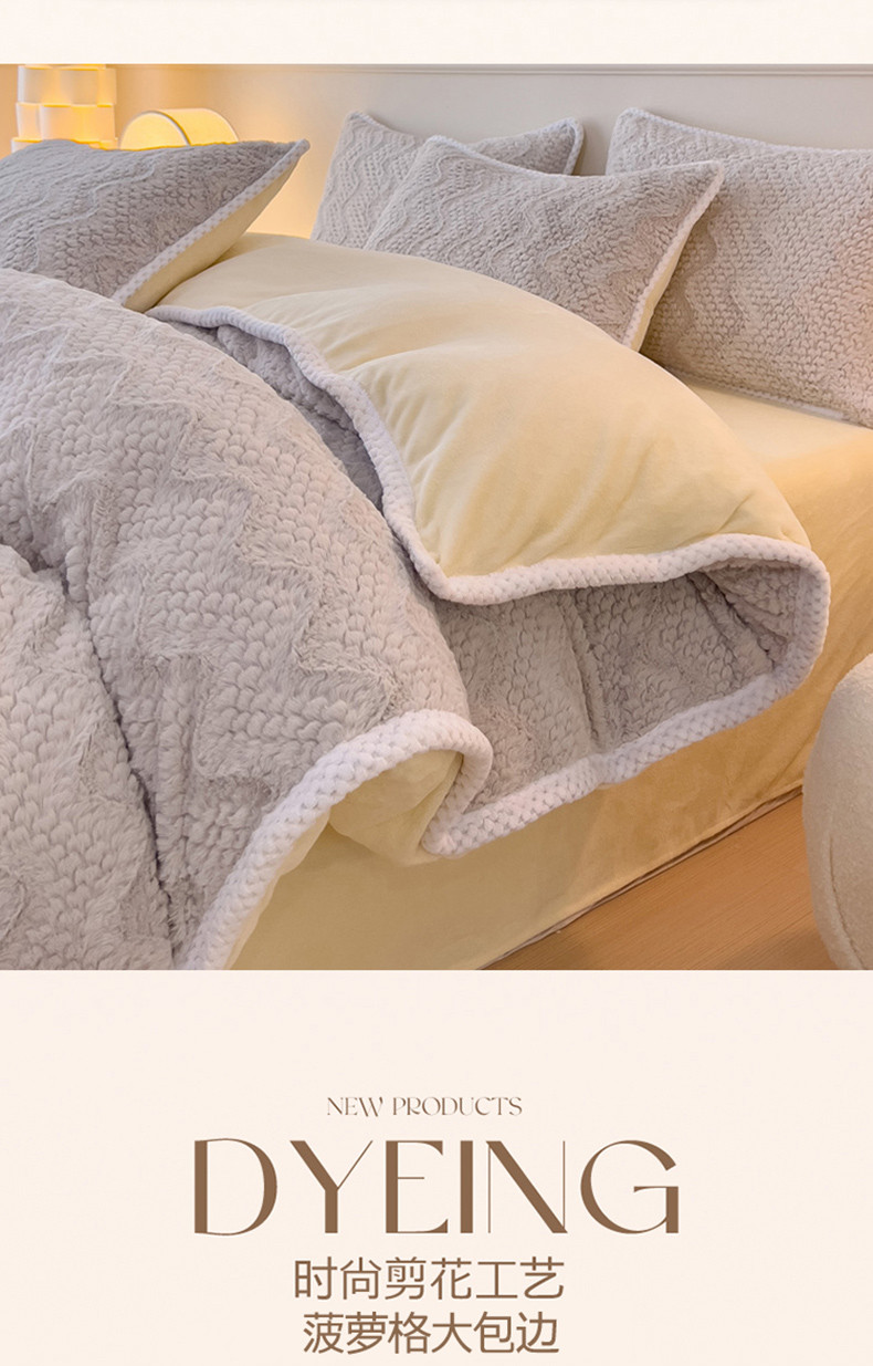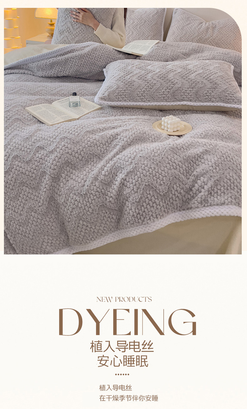 菲儿家纺 2023新款小兔毛绒立体剪花四件套 小兔毛-波浪灰
