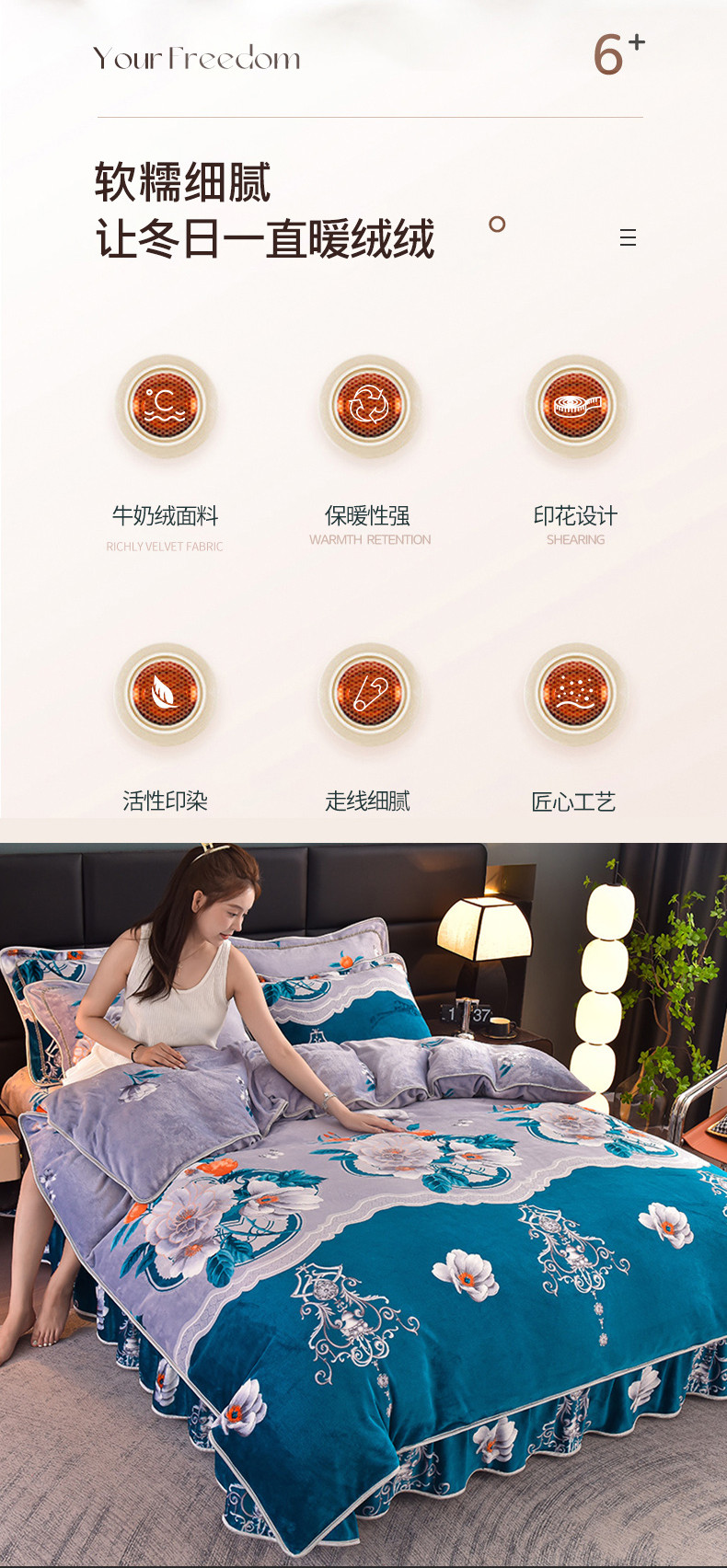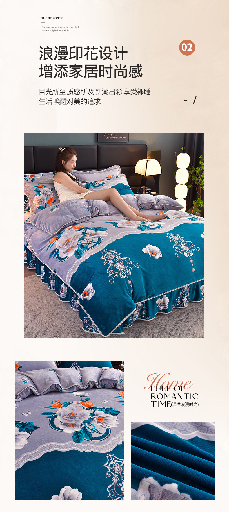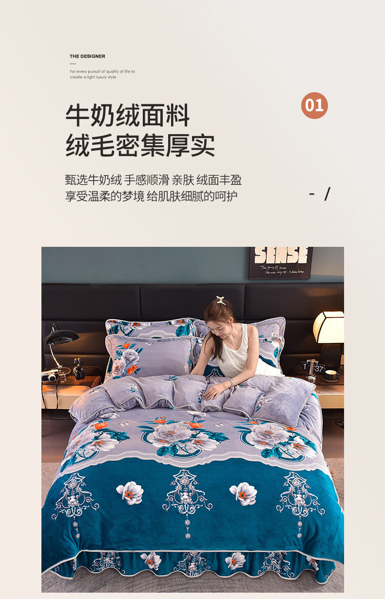 芯诗曼2025新款8.5斤直播热款高克重牛奶绒法莱绒水晶金貂法莱绒四件套花样情怀,花样情怀