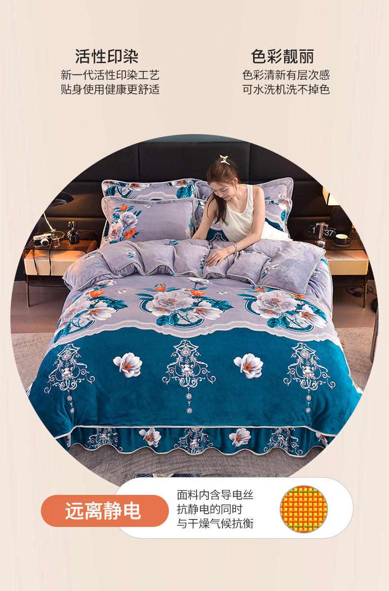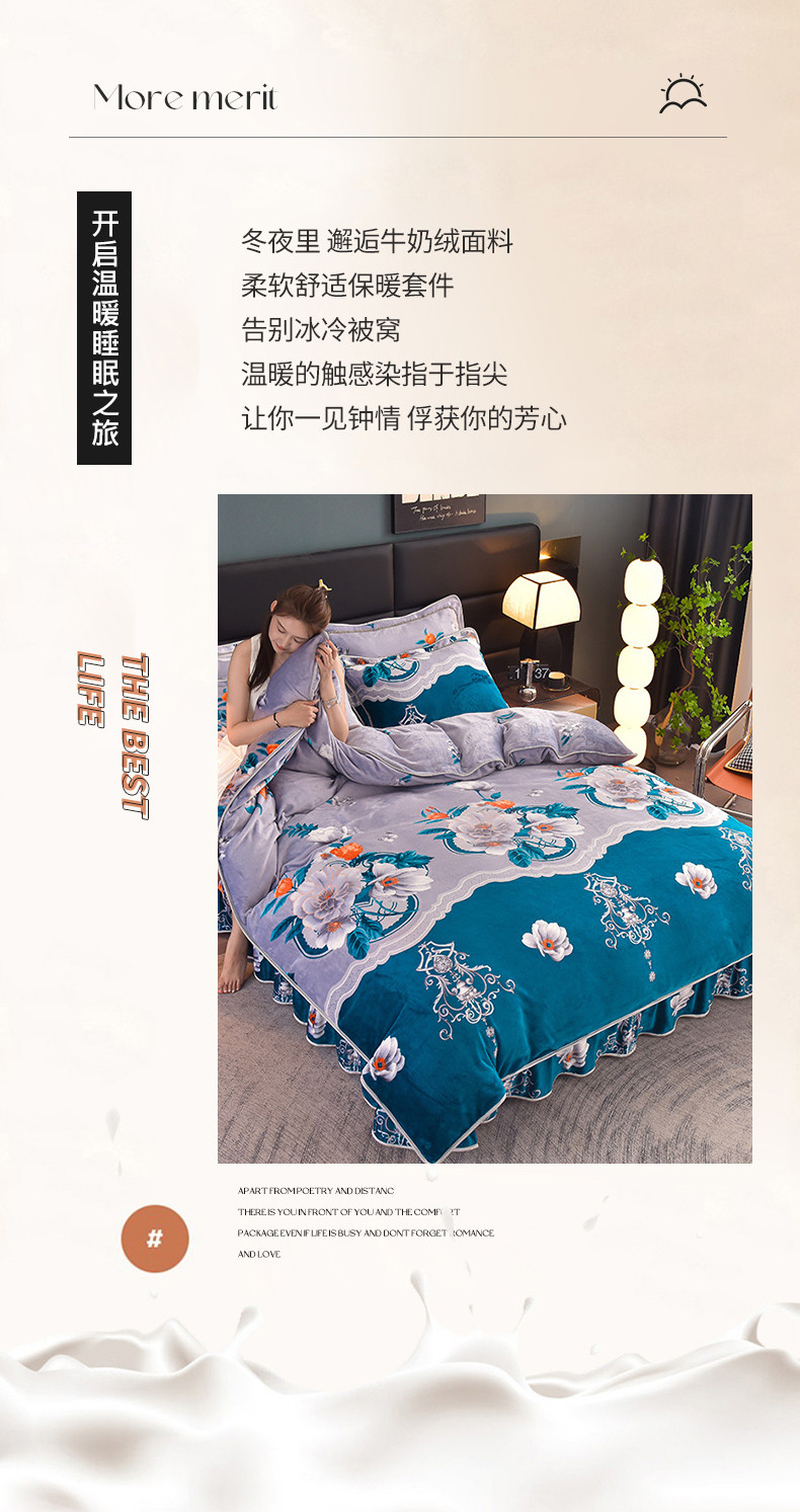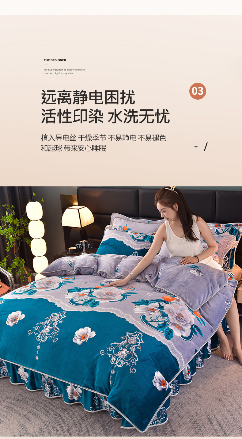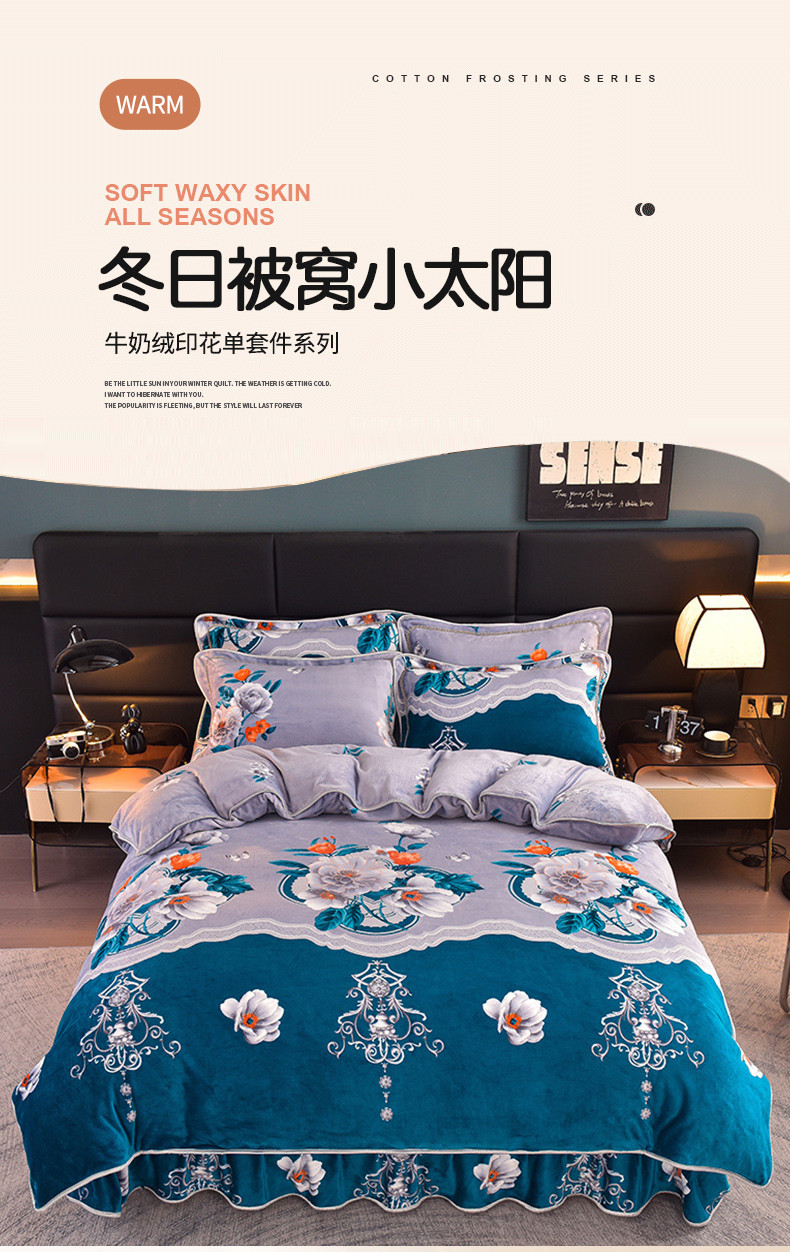 芯诗曼2025新款8.5斤直播热款高克重牛奶绒法莱绒水晶金貂法莱绒四件套花样情怀,花样情怀