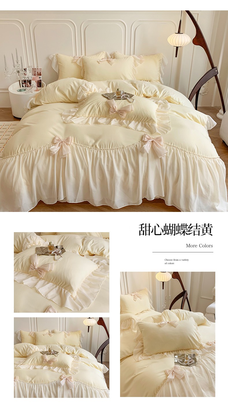商品名称:吾欢心 2025新款暖小棉甜心蝴蝶结四件套 甜心蝴蝶结黄