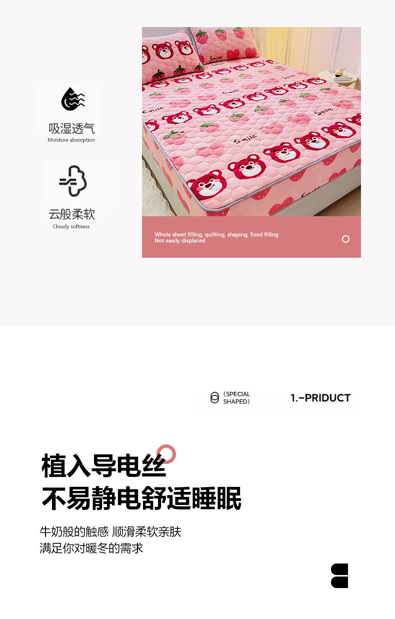 (总)情煊家纺 2025新款A类牛奶绒印花夹棉床垫,一鹿幸福,乐拼字母,大牌风范,太空漫步,蓝大格,爱心小熊,豹纹,大力熊,蝶恋,红玫瑰,林深见鹿,秘境,蘑菇小兔,童趣,童真,西高地,银杏叶,紫爱心