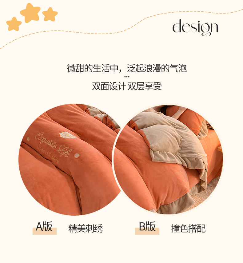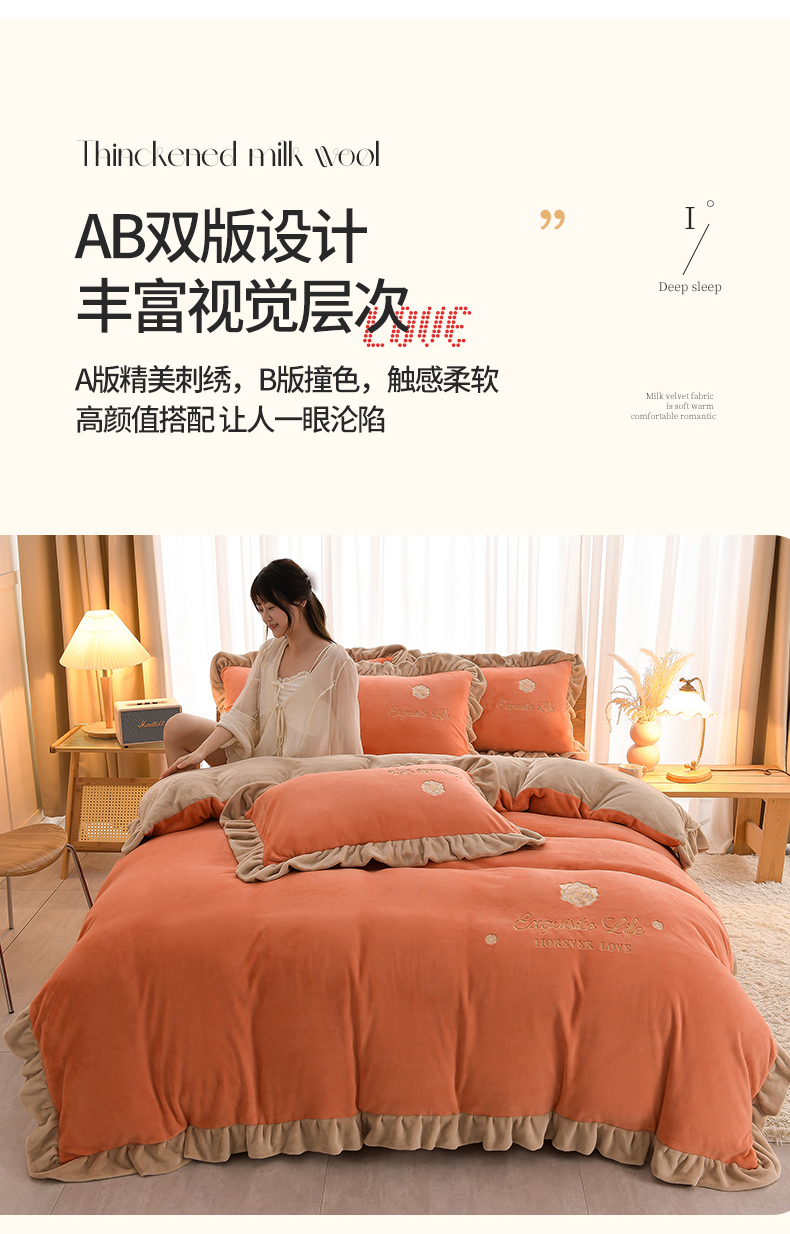 商品名称:氧家 2025款韩版纯色双层花边加厚牛奶绒四件套 素颜-橙橘色