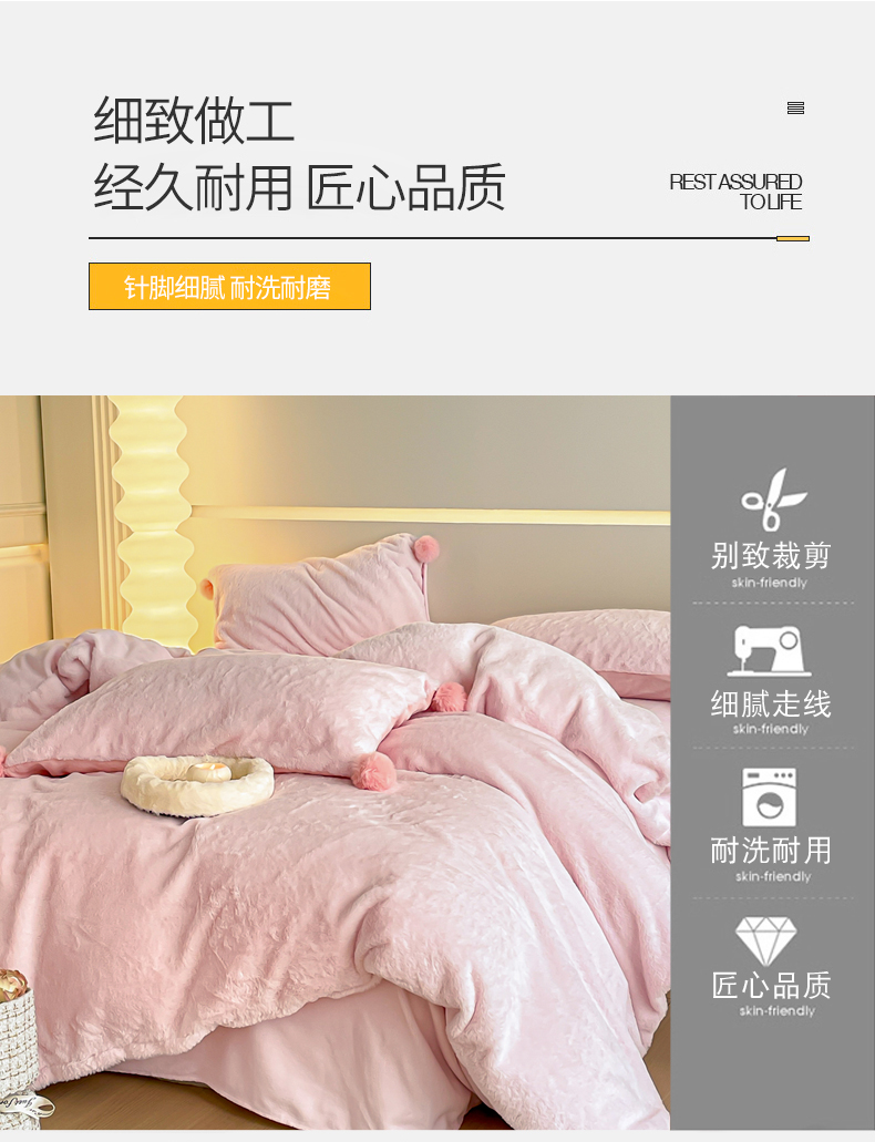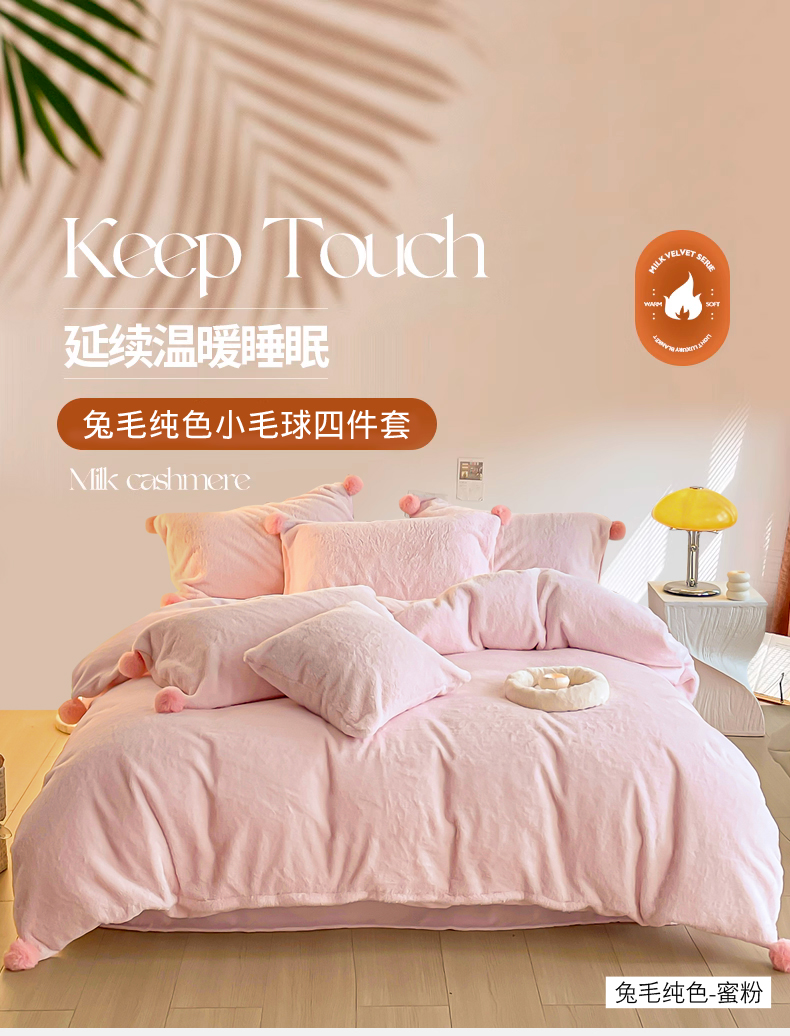 当前位置: 91家纺网 > 商品网购 > 床品套件 > 四件套 > 牛奶绒四件套 > 金爱家 23新品全消光牛奶绒A类纯色立体獭兔毛绒四件套 兔毛纯色-蜜粉