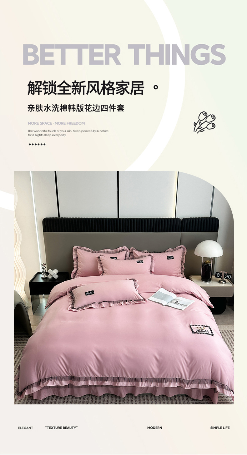 (总)2023新款韩版公主风水洗棉拼色灰色花园系列四件套,灰色花园 白色,灰色花园 纯灰,灰色花园 豆绿,灰色花园 裸粉,灰色花园 浅蓝,灰色花园 紫色