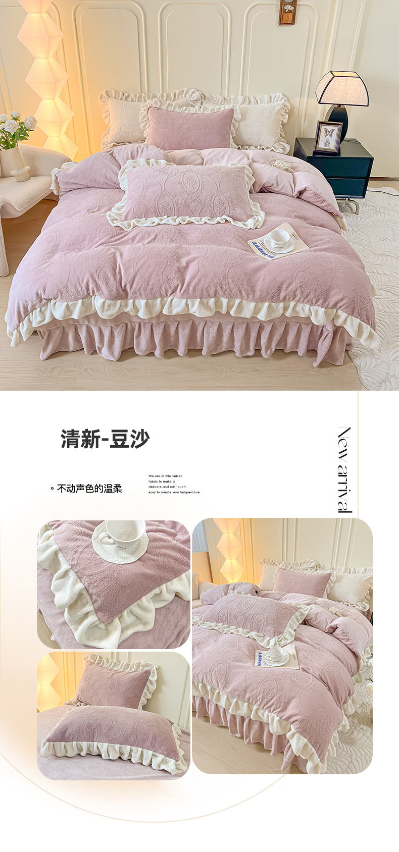 商品名称:十里居 2023新款230克雕花韩版床裙牛奶绒四件套 清新-豆沙